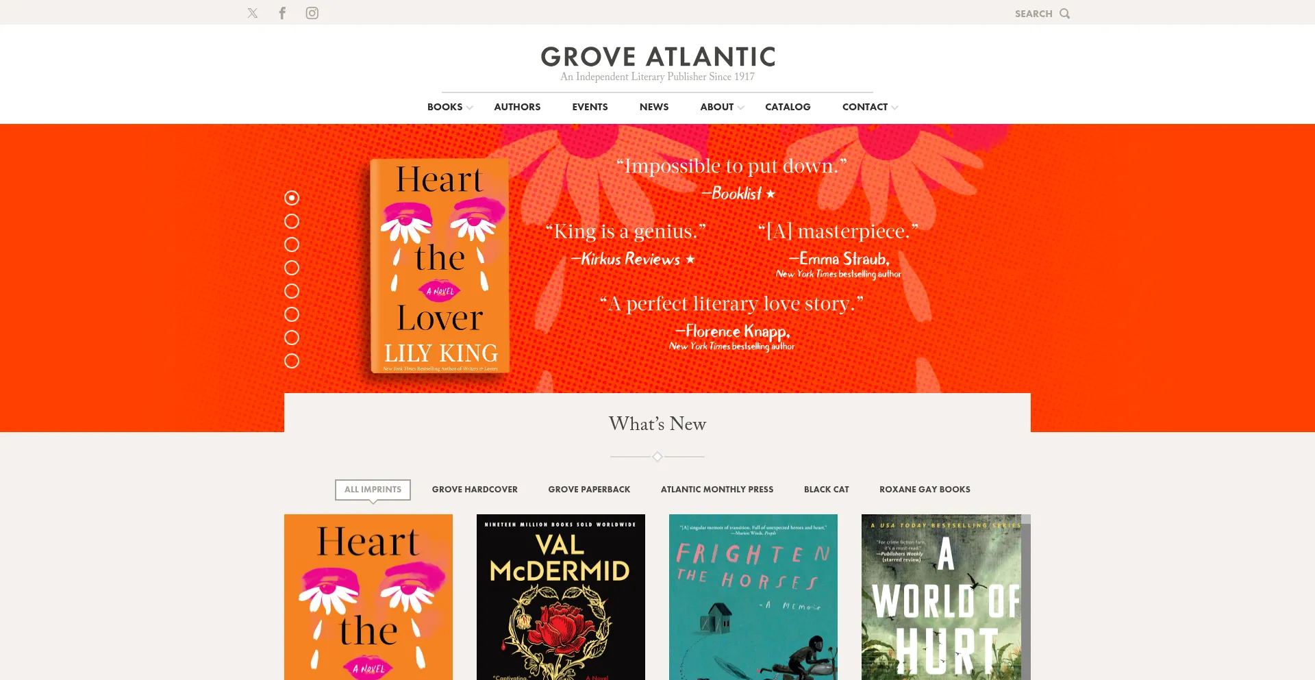 Grove Atlantic is an American independent literary publisher based in NYC. Our imprints: Grove Press, Atlantic Monthly Press, Black Cat, and Mysterious Press.