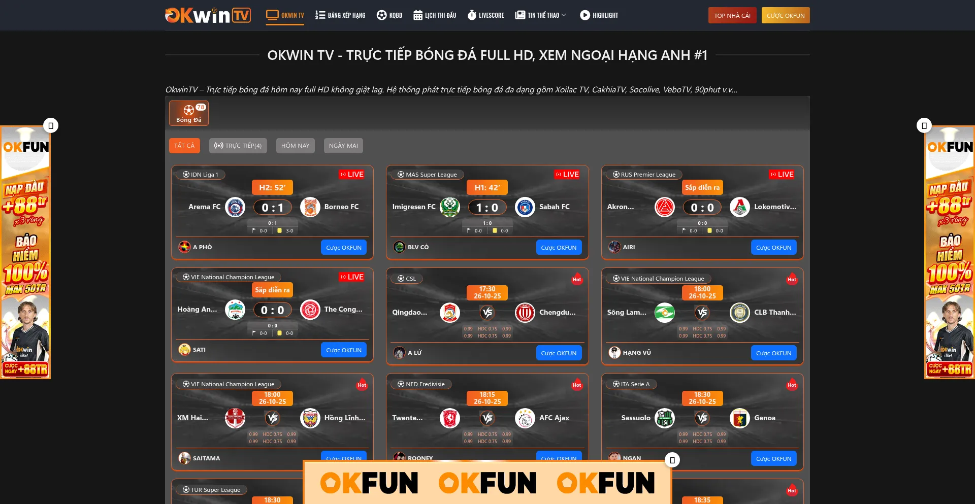 OkwinTV - Trá»±c tiáșżp bĂłng đá hĂŽm nay full HD khĂŽng giáș­t lag. Hệ thống phĂĄt trá»±c tiáșżp bĂłng đá đa dáșĄng gồm Xoilac TV, CakhiaTV, Socolive, VeboTV, 90phut...