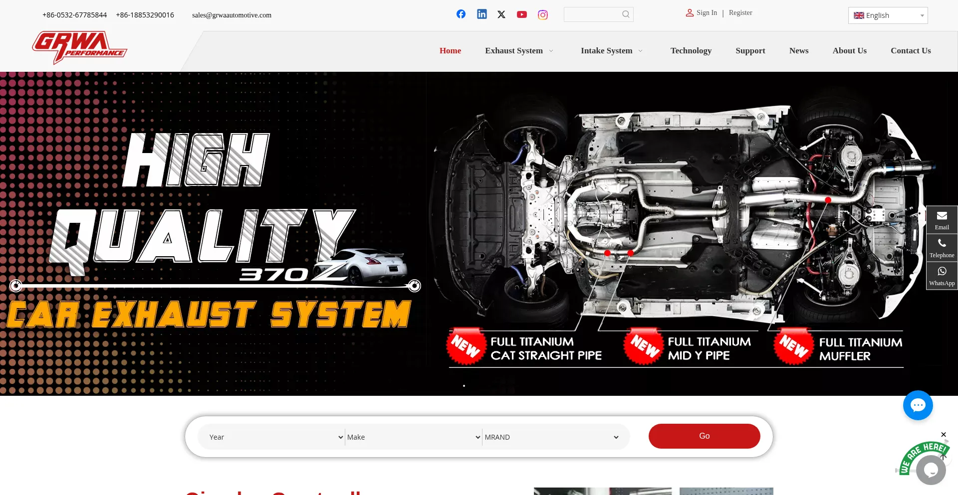 GRWA is a professional supplier of exhaust system in China. Our main product includes exhaust muffler, exhaust header, exhaust downpipe, intake pipe, exhaust tip. For more produ...
