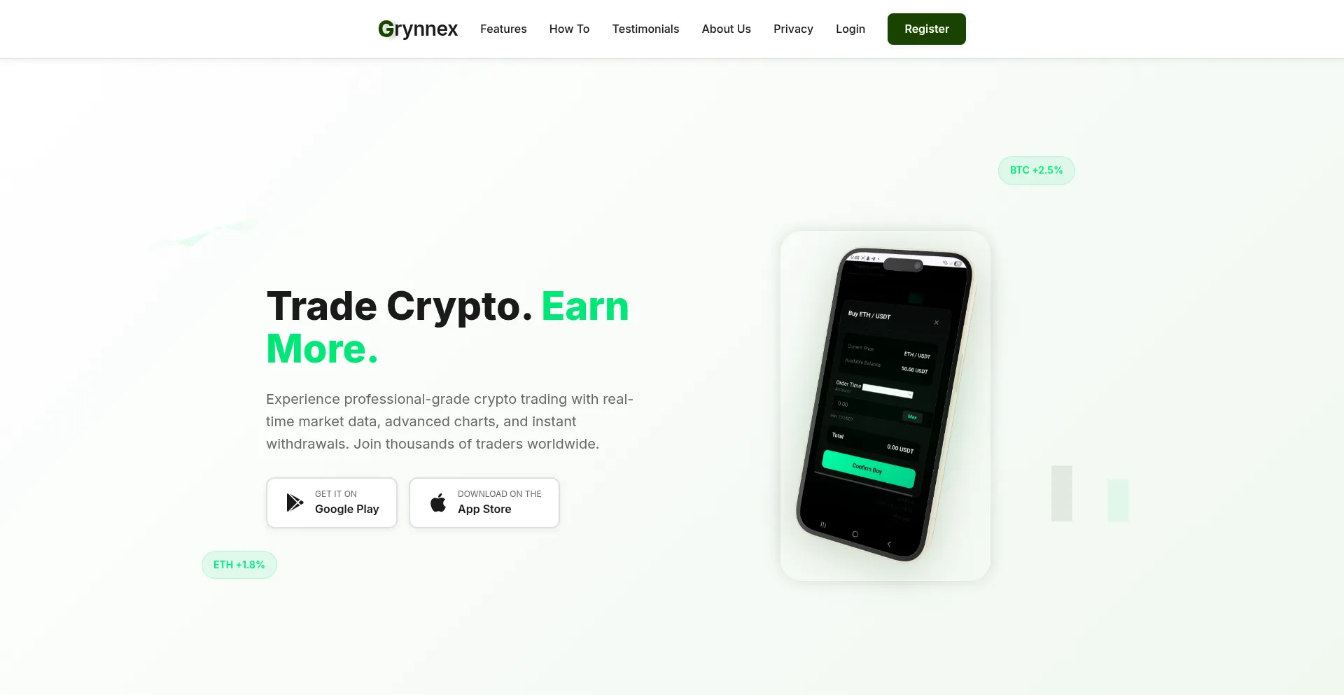 Trade cryptocurrencies with confidence. Real-time market data, advanced charts, and instant withdrawals. Join thousands of traders on Grynnex.