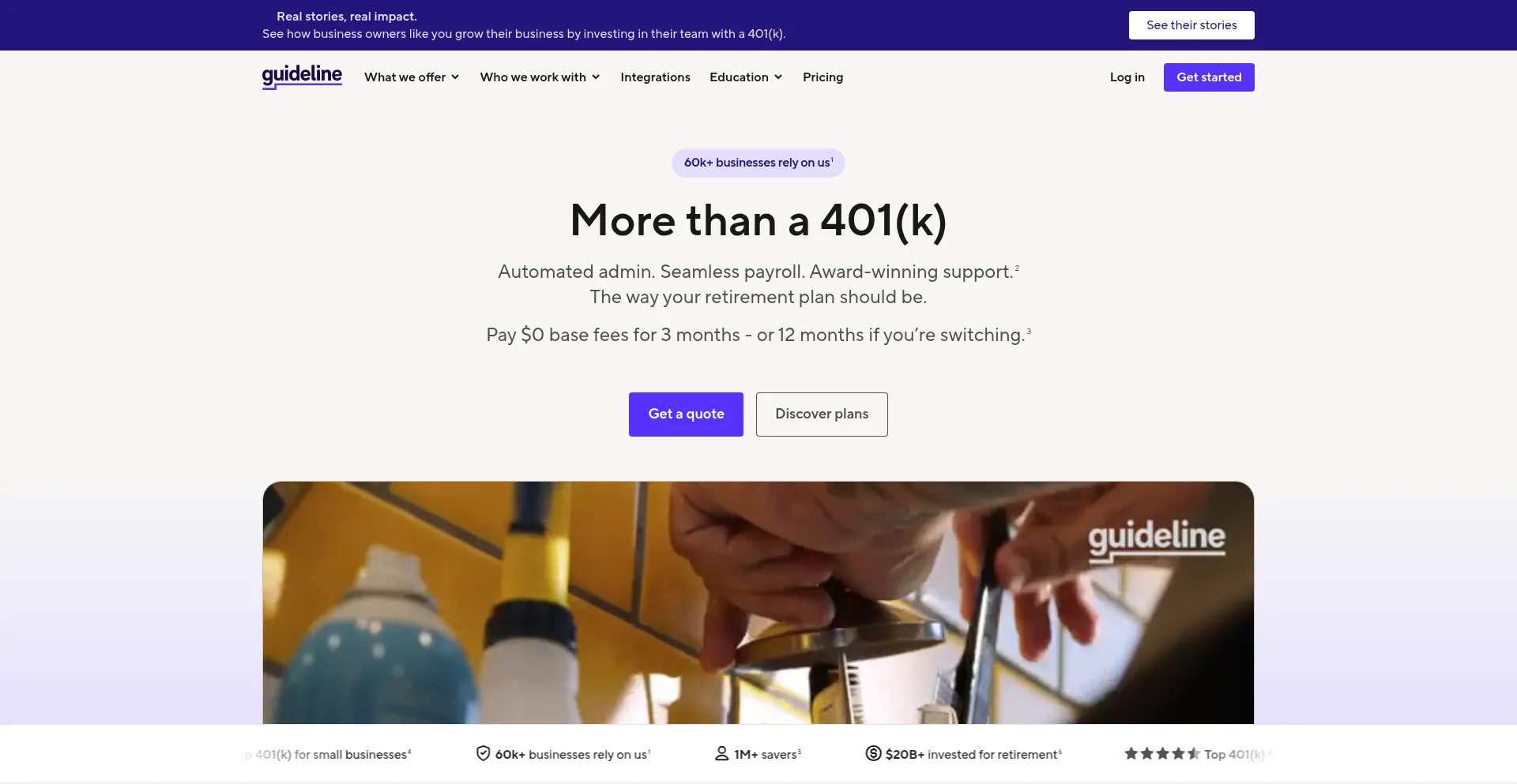 Whether you’re hiring your first employee or managing hundreds, Guideline delivers low-fee, payroll-synced retirement plans with transparent pricing.