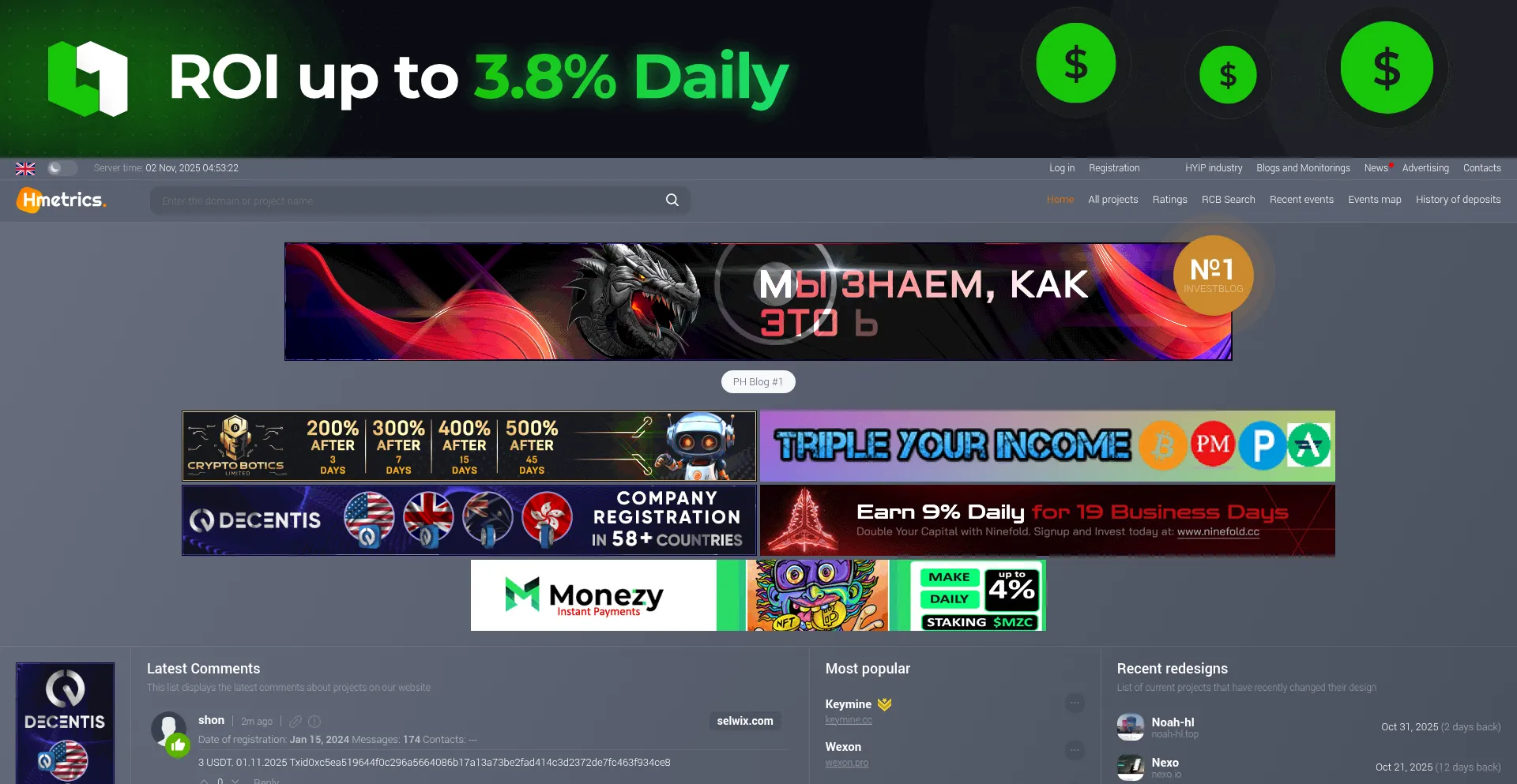 H-metrics.com - search and analysis of all HYIPs, statuses on all monitoring