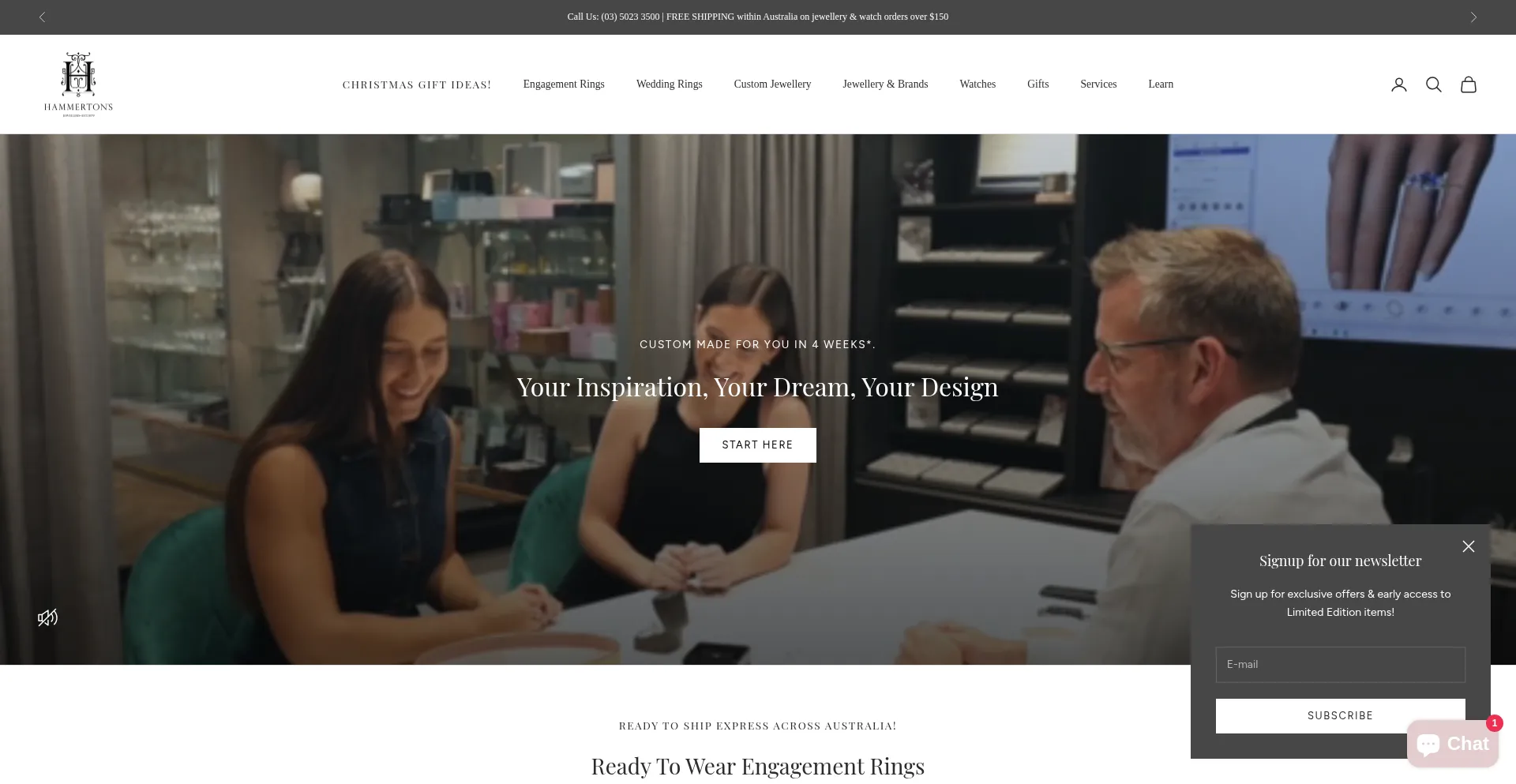 Specialising in Custom made jewellery, diamonds and exquisite jewellery, Hammerton's is proudly celebrating 146 years. Contact us today to discuss your special jewellery project.