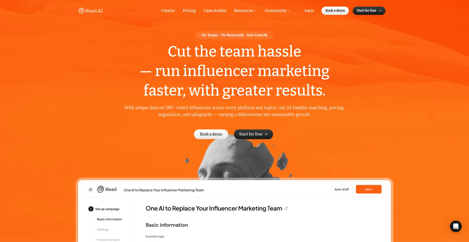 Head AI is an influencer marketing AI agent that replaces your human team and runs campaigns end to end, delivering results 10× more effectively.