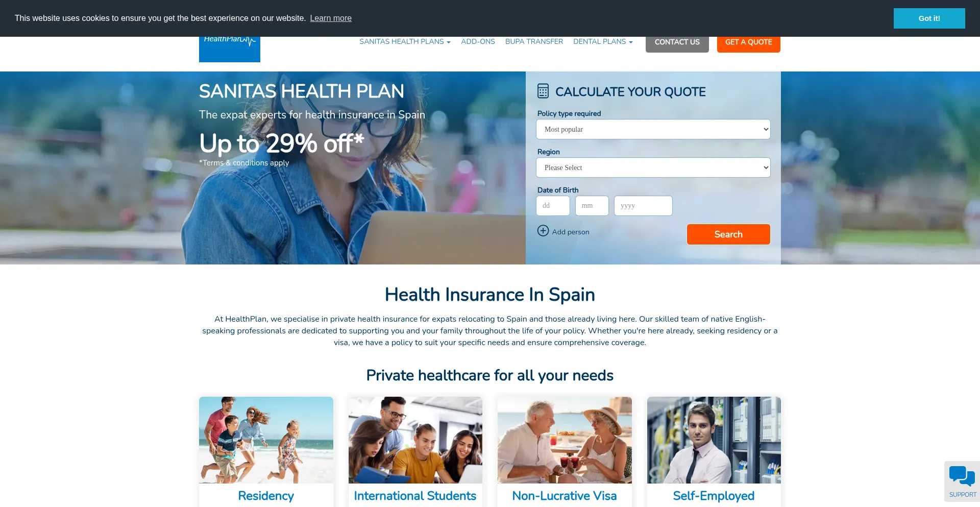 Sanitas health insurance cover for expats living in Spain. Local English speaking authorised office with policies underwritten by Bupa International.
