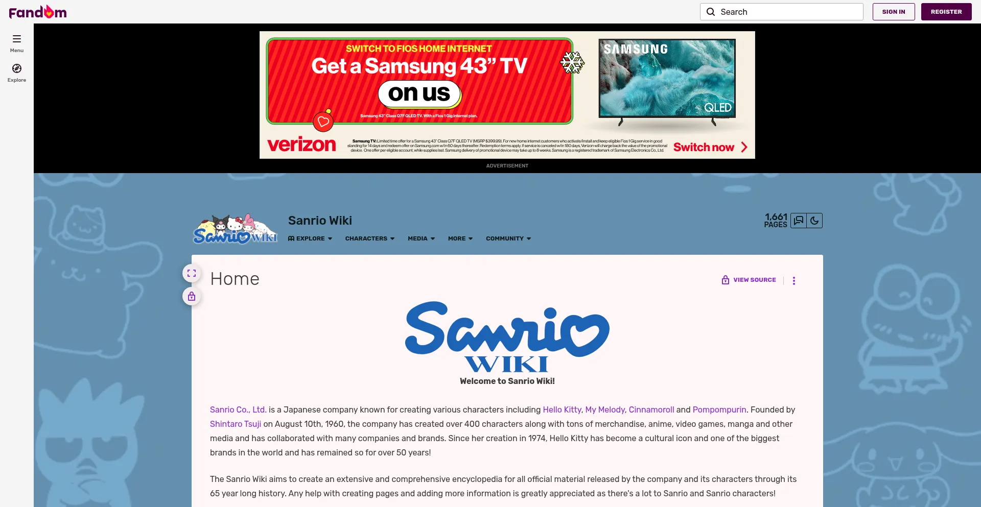 Welcome to Sanrio Wiki! Sanrio Co., Ltd. is a Japanese company known for creating various characters including Hello Kitty, My Melody, Cinnamoroll and Pompompurin. Founded by Sh...