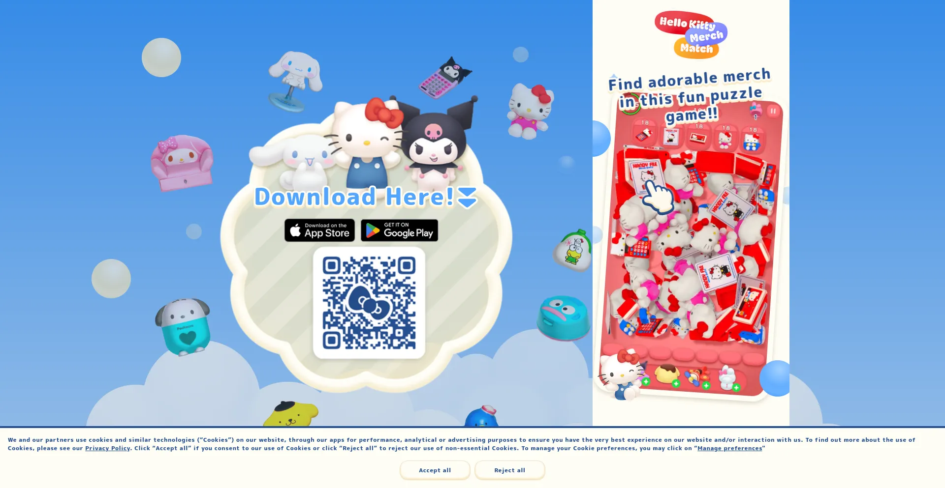 Discover Hello Kitty And Friends merch in game form! Match 3 of the same Sanrio character merch from Hello Kitty, My Melody, Pompompurin, Cinnamoroll, and many more! Collect bot...