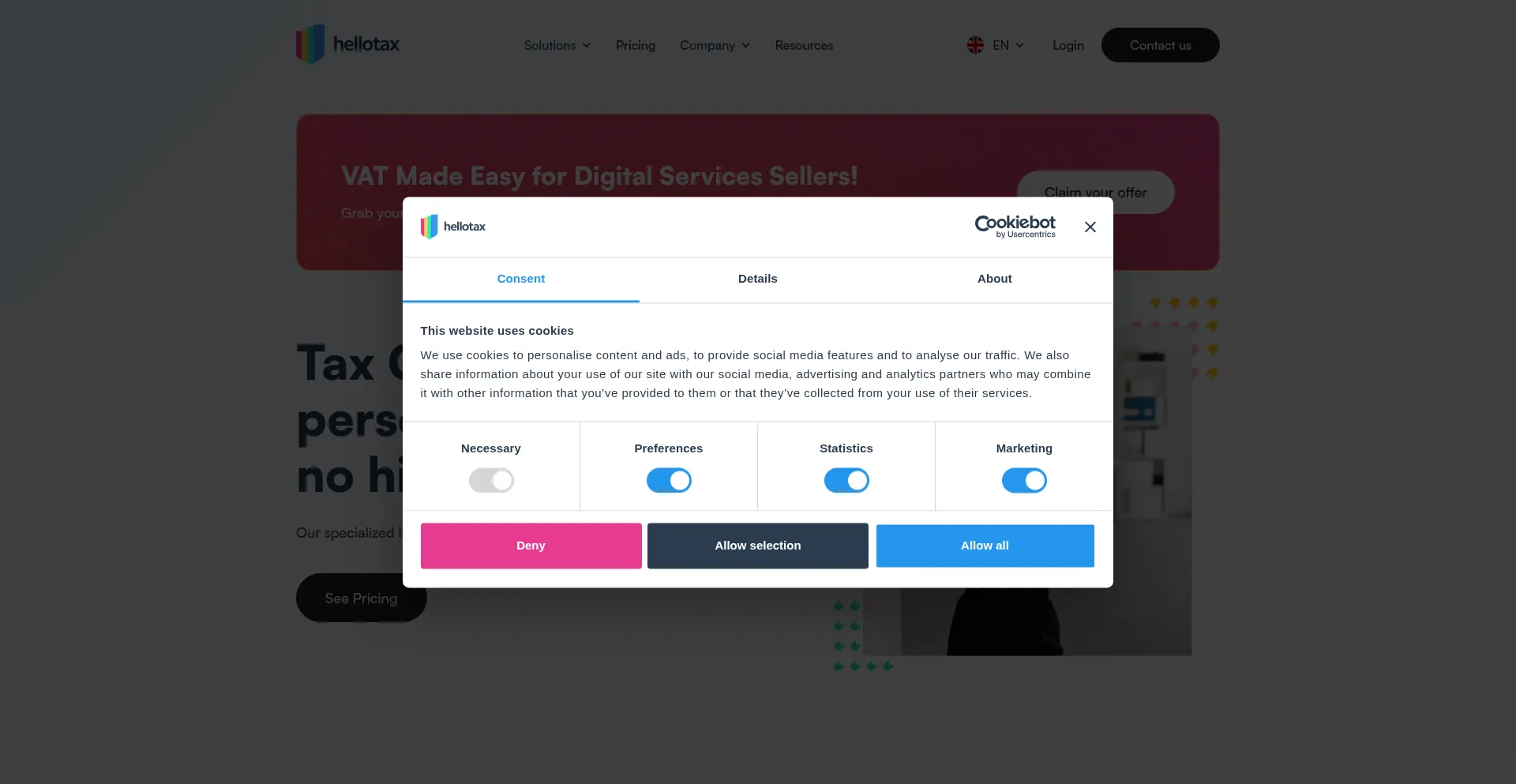 Le site web implémente des mécanismes de consentement aux cookies en conformité avec les réglementations de confidentialité telles que RGPD ou CCPA. Cela démontre que hellotax.com adhÚre aux standards de protection des données et fournit aux utilisateurs un contrÎle sur les pratiques de collecte de données personnelles.