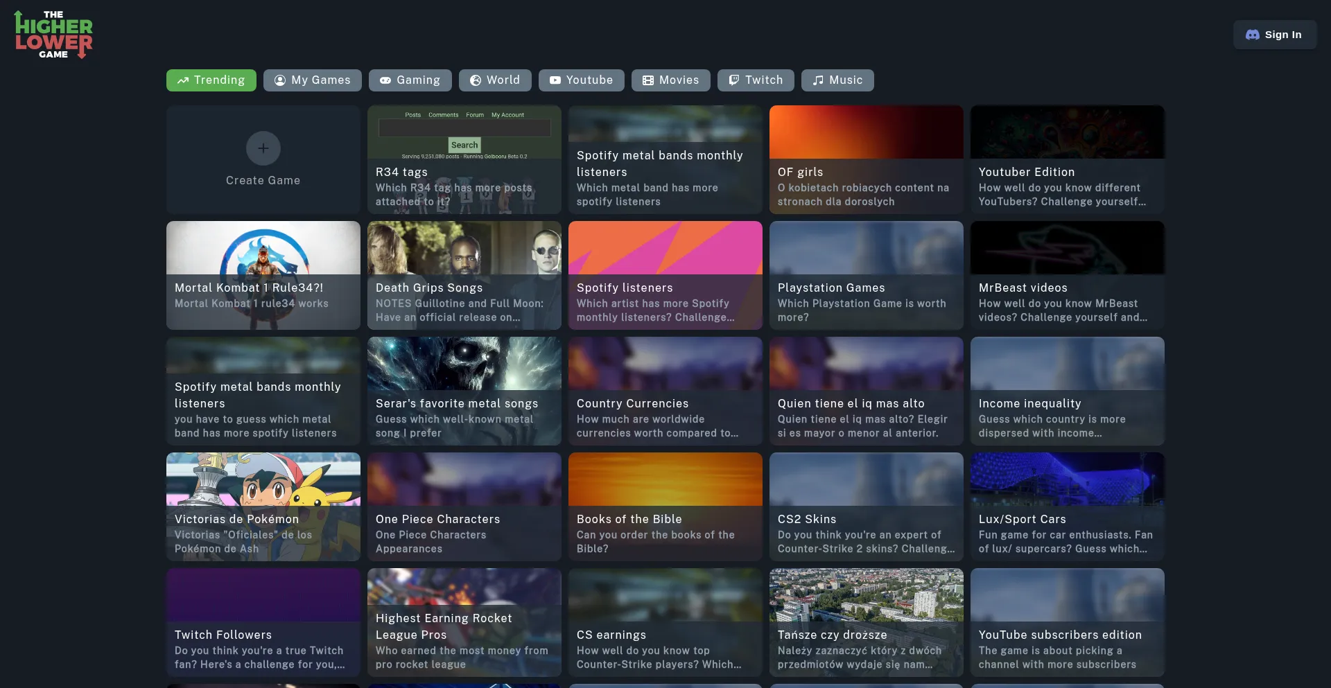 Play the Higher Lower Game, a simple addictive game where you must guess if the value is higher or lower. Challenge yourself and your friends on hundreds of different game modes.