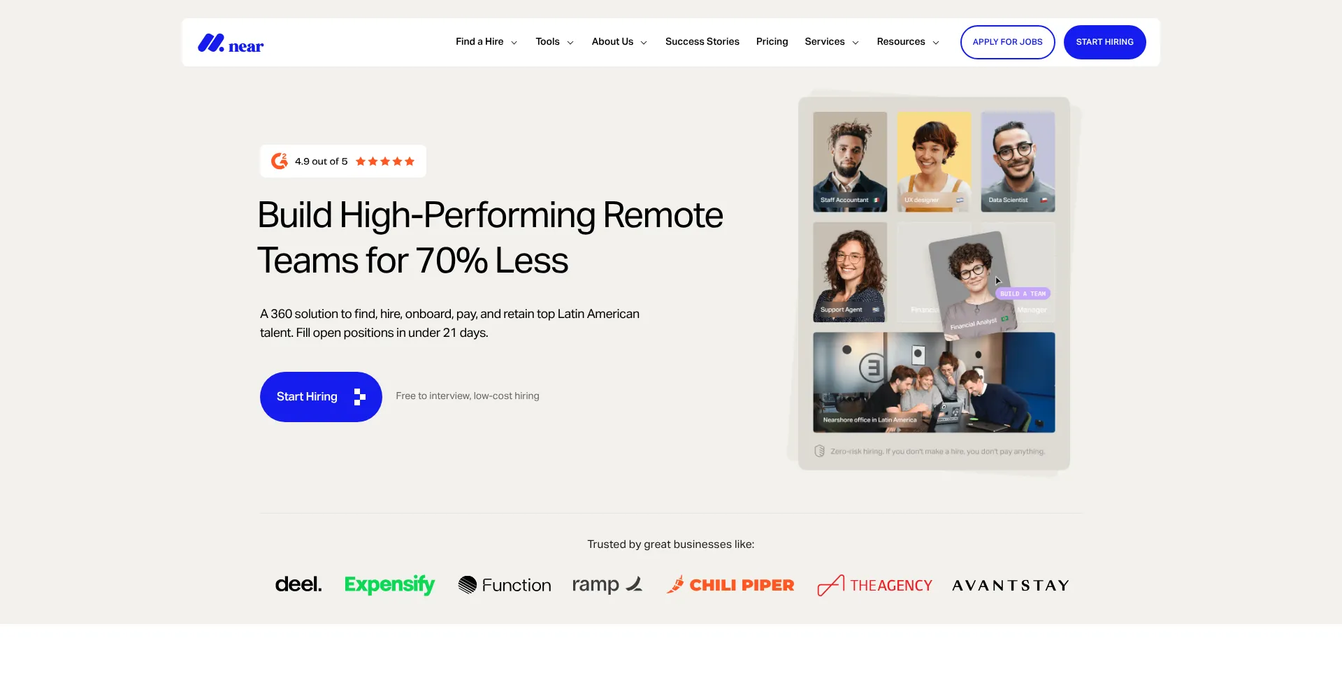 Hire outstanding talent from Latin America for 70% Less. We’ll help you find, hire, onboard, pay, and retain top talent in under 21 days.