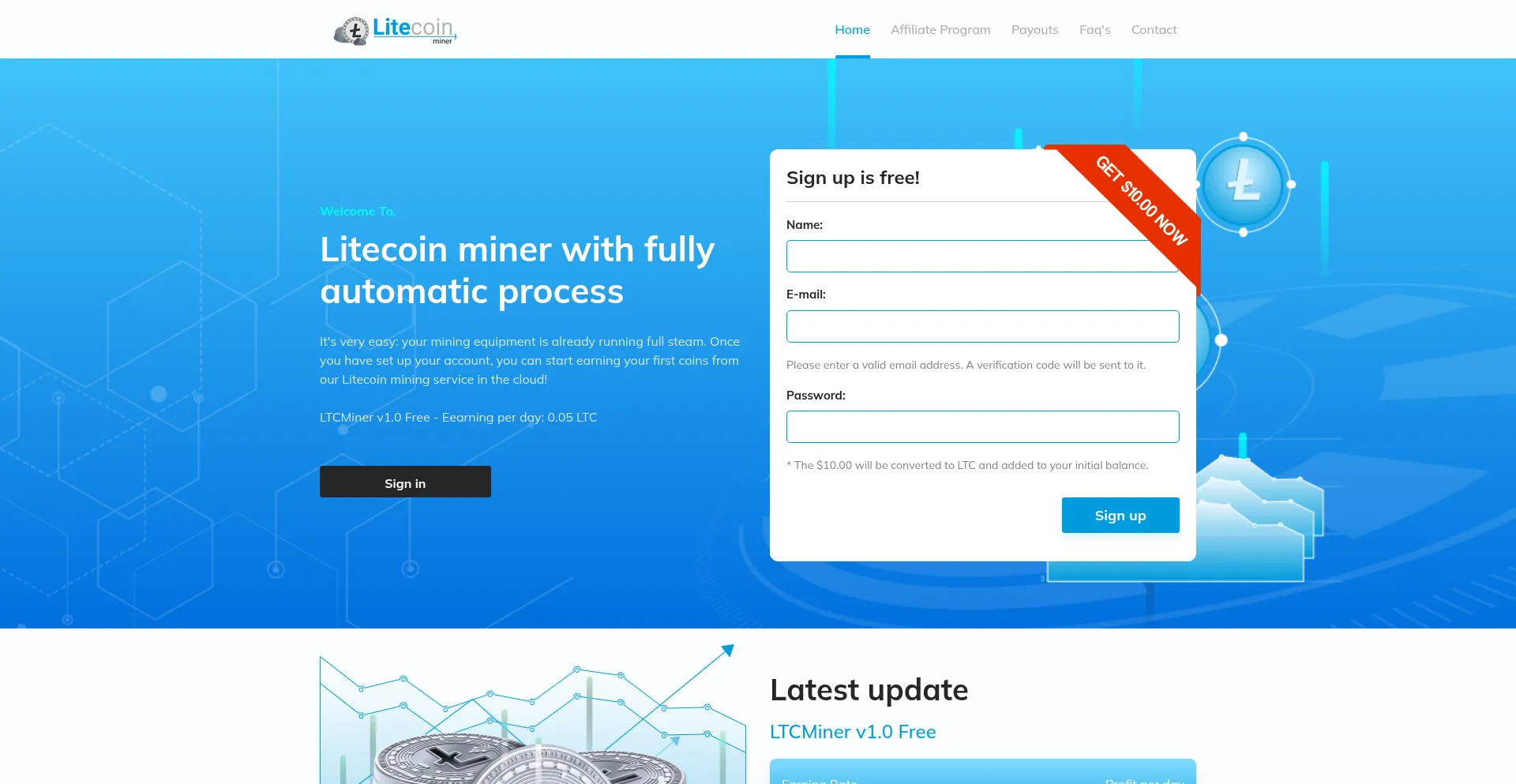 Litecoin Miner with fully automatic process. Start earning Litecoin now! Sign up now and get a $10.00 bonus!