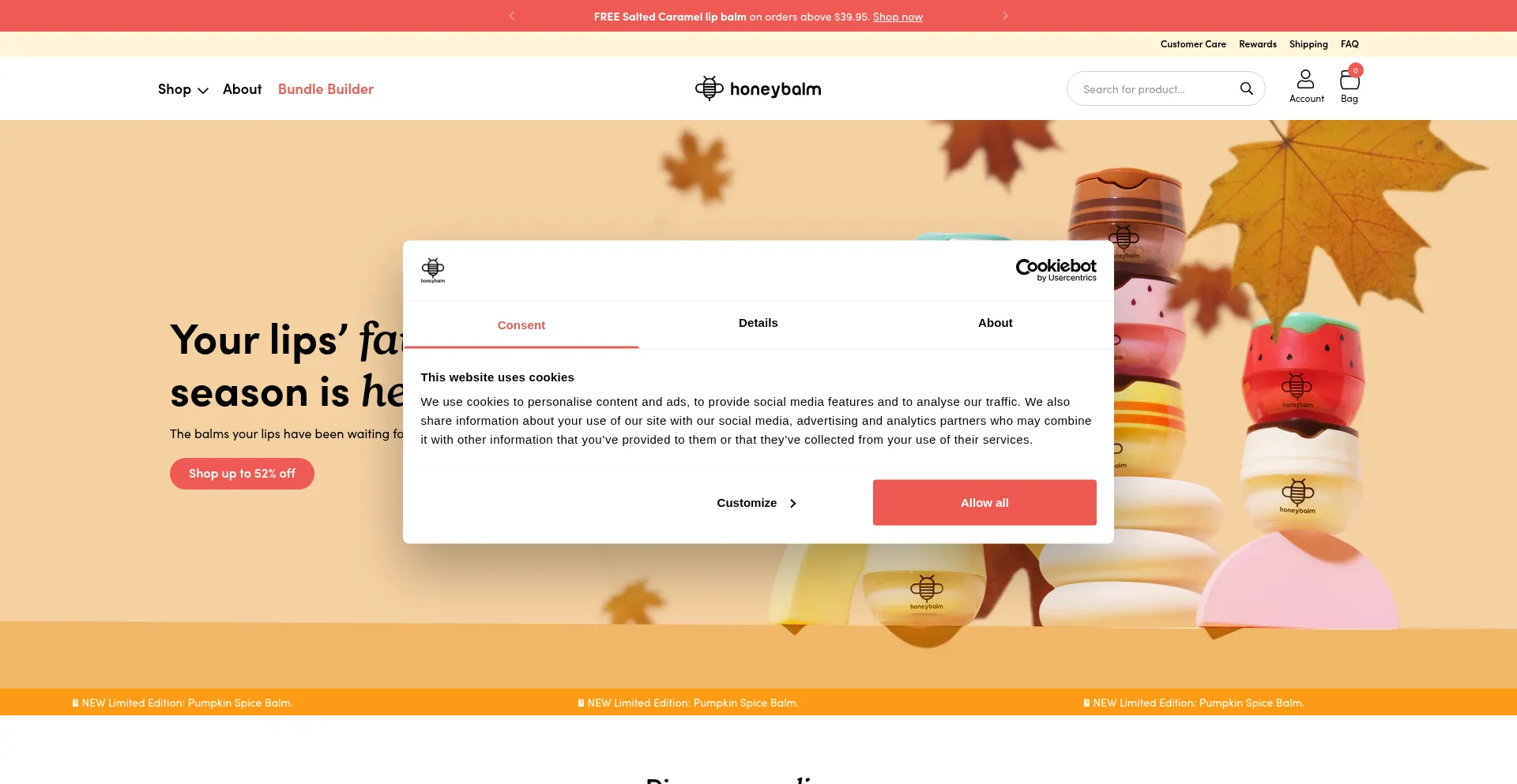 Le site web implémente des mécanismes de consentement aux cookies en conformité avec les réglementations de confidentialité telles que RGPD ou CCPA. Cela démontre que honeybalm.com adhÚre aux standards de protection des données et fournit aux utilisateurs un contrÎle sur les pratiques de collecte de données personnelles.