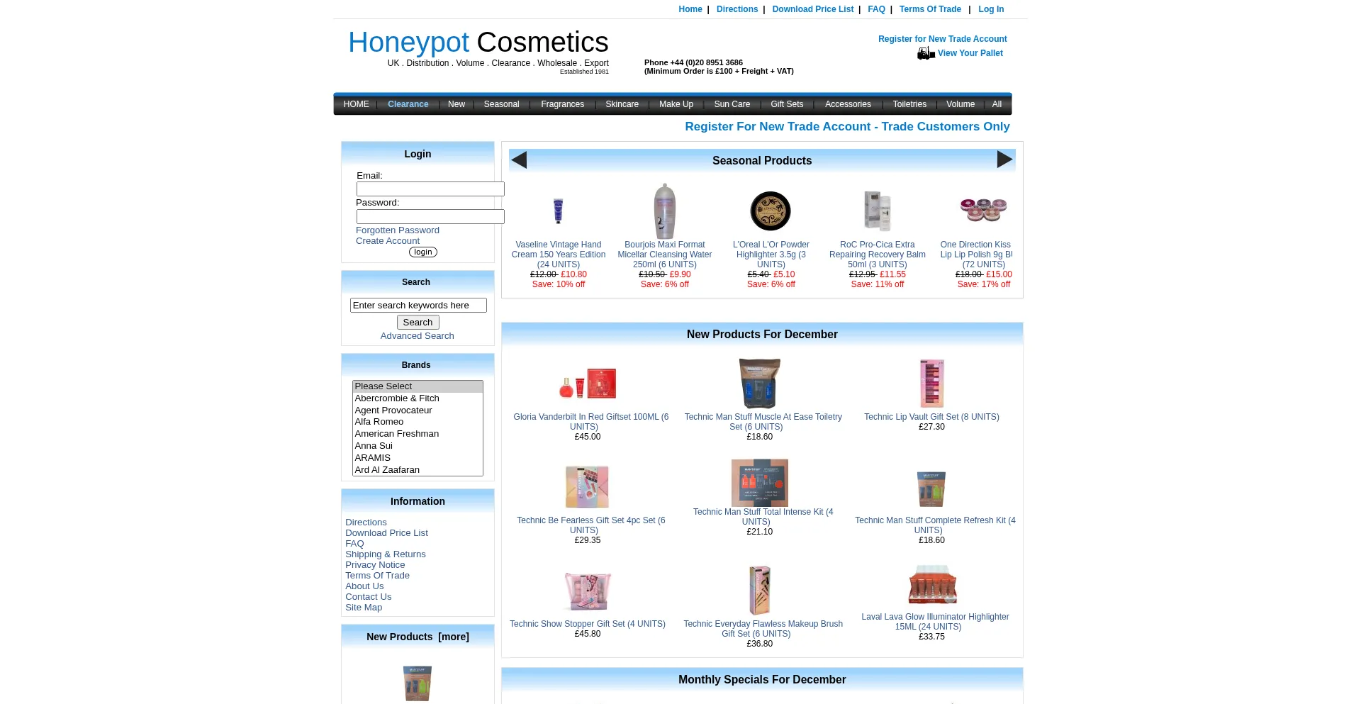 UK Honeypot Wholesale Cosmetics, Skincare, Fragrances, Beauty Accessories And Export : - Make Up Fragrances Clearance Gift Sets Accessories Skincare Toiletries Sun Care New Sea...
