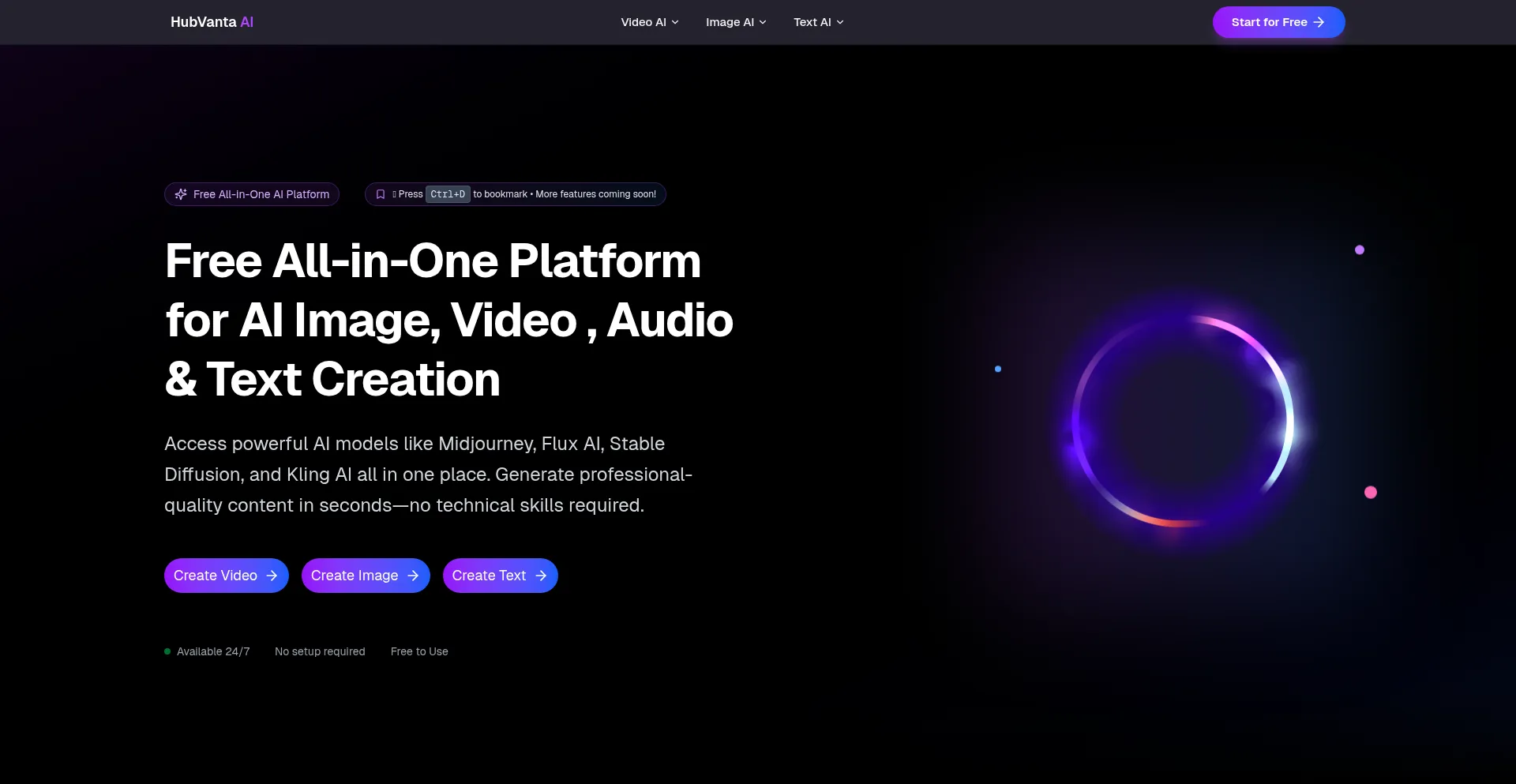 HubVanta AI - Free AI Video, Audio, Image & Text Generation Platform