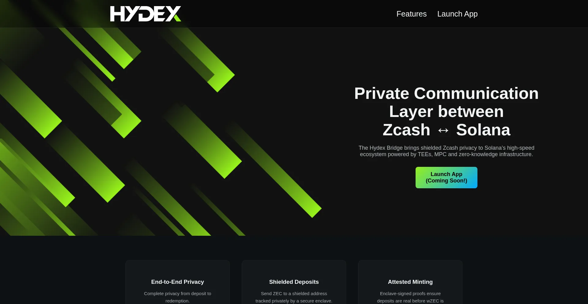 The Hydex Bridge brings shielded Zcash privacy to Solana’s high-speed ecosystem powered by TEEs, MPC and zero-knowledge infrastructure.