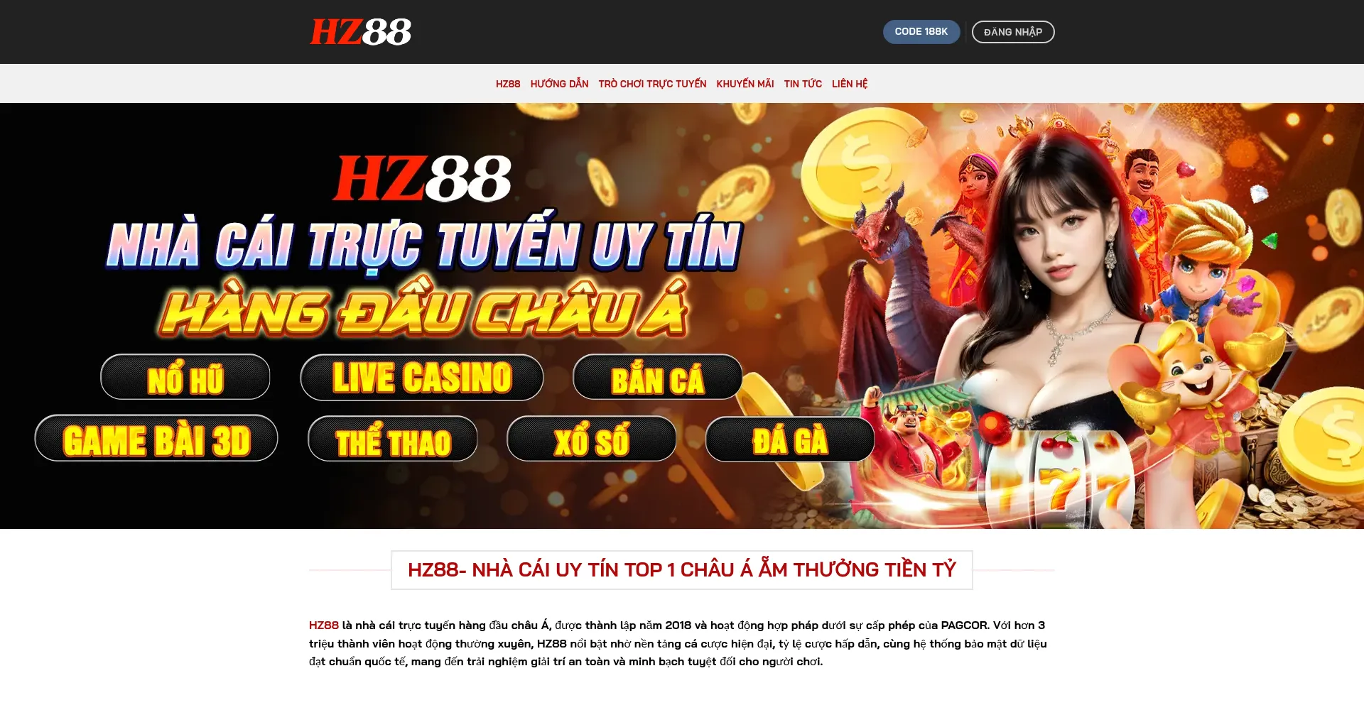 HZ88 lĂ  nhĂ  cĂĄi trá»±c tuyáșżn hĂ ng đáș§u chĂąu Á, Ä‘Æ°á»Łc thĂ nh láș­p năm 2018 vĂ  hoáșĄt động hợp phĂĄp dưới sá»± cáș„p phĂ©p cá»§a PAGCOR. Với hÆĄn 3 triïżœ...