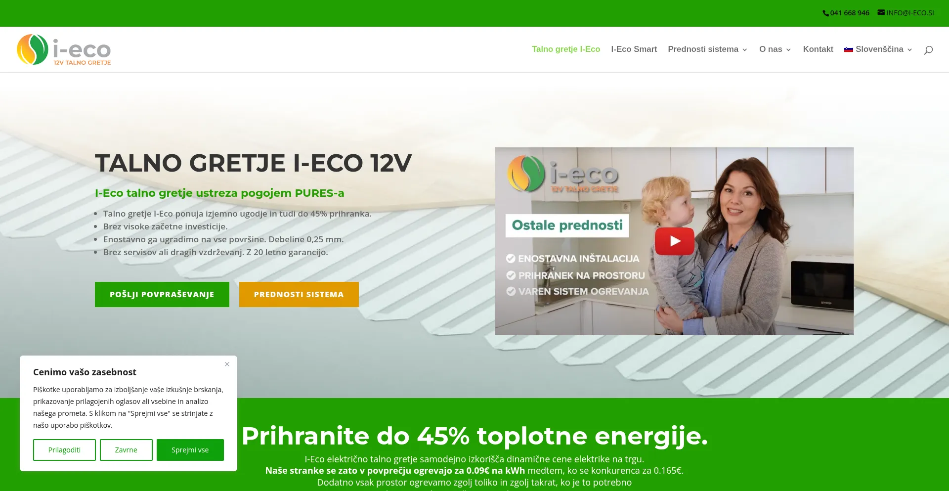 Talno gretje I-Eco 12V zagotavlja do 45% prihranka energije. Enostavna vgradnja, brez vzdrĆŸevanja in visoke začetne investicije. Primerno za vse vrste talnih oblog.