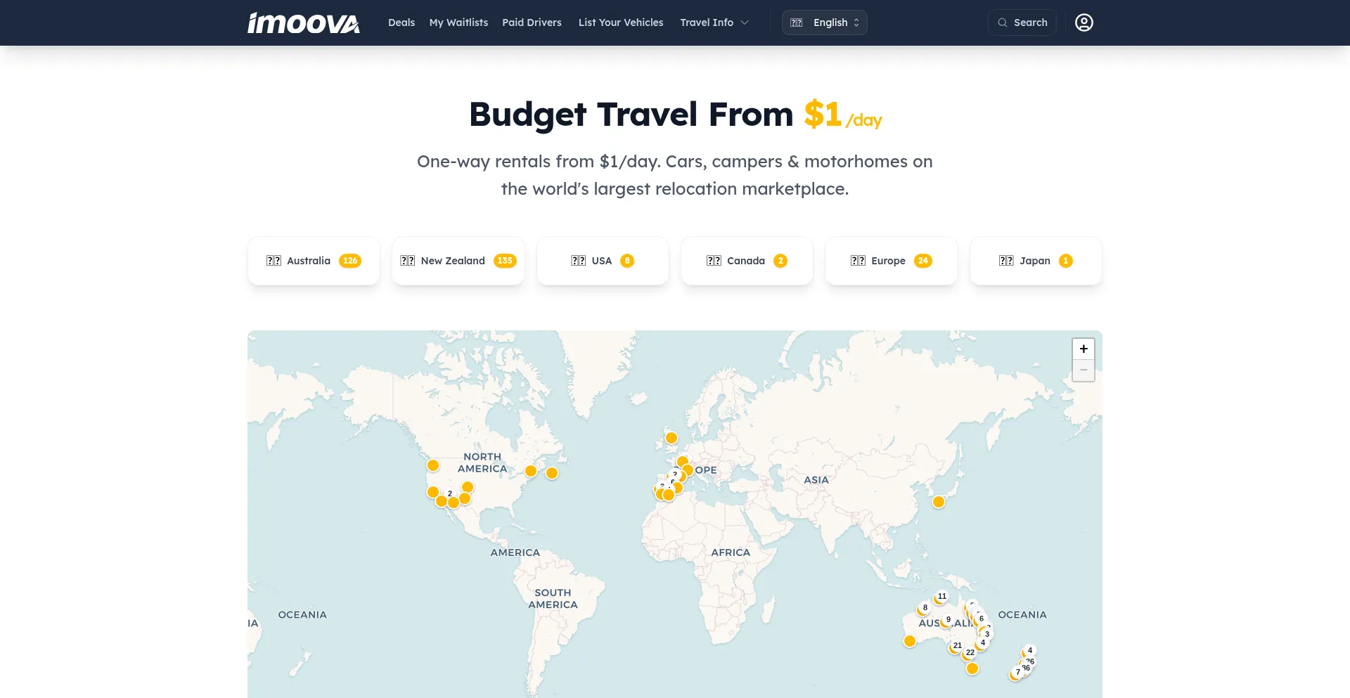 Book one-way car, camper & motorhome rentals from $1/day. Imoova makes road trips affordable with flexible relocations across Australia, New Zealand, USA, Canada, Europe & Japan.