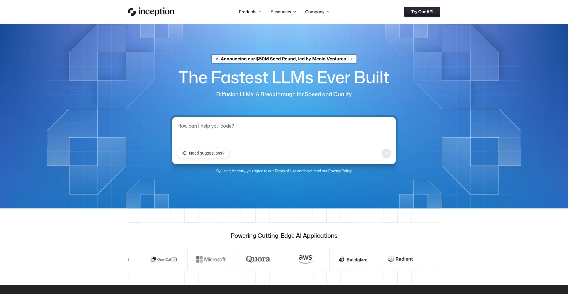 We are leveraging diffusion technology to develop a new generation of LLMs. Our dLLMs are much faster and more efficient than traditional auto-regressive LLMs. And diffusion mod...