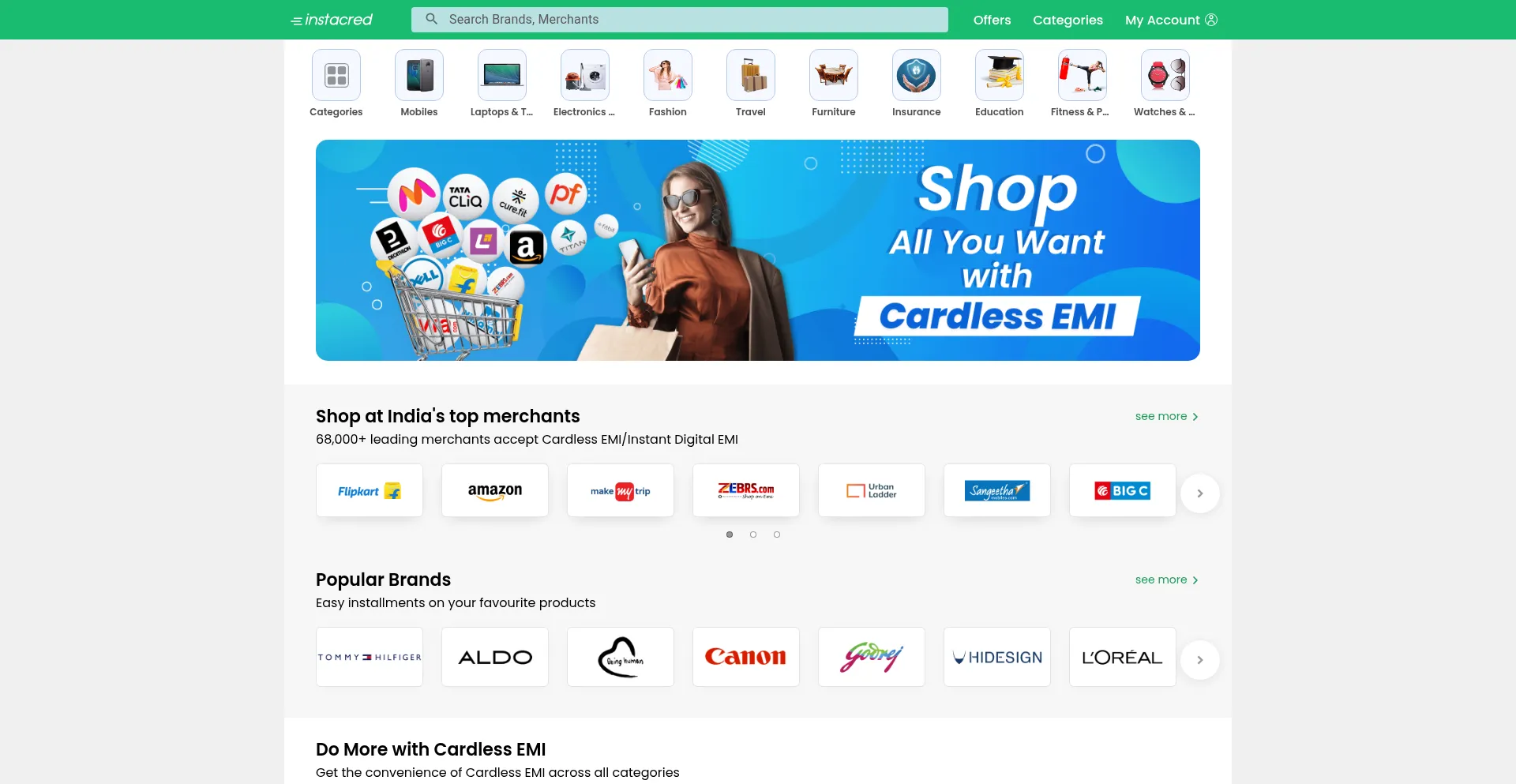 EMI on mobiles, laptops, electronics, fashion, furnishing & more. Shop with InstaCred Cardless EMI, No Cost EMI, Flipkart EMI, Amazon EMI, IDFC EMI, HDFC EMI, ICICI EMI, Kotak EMI