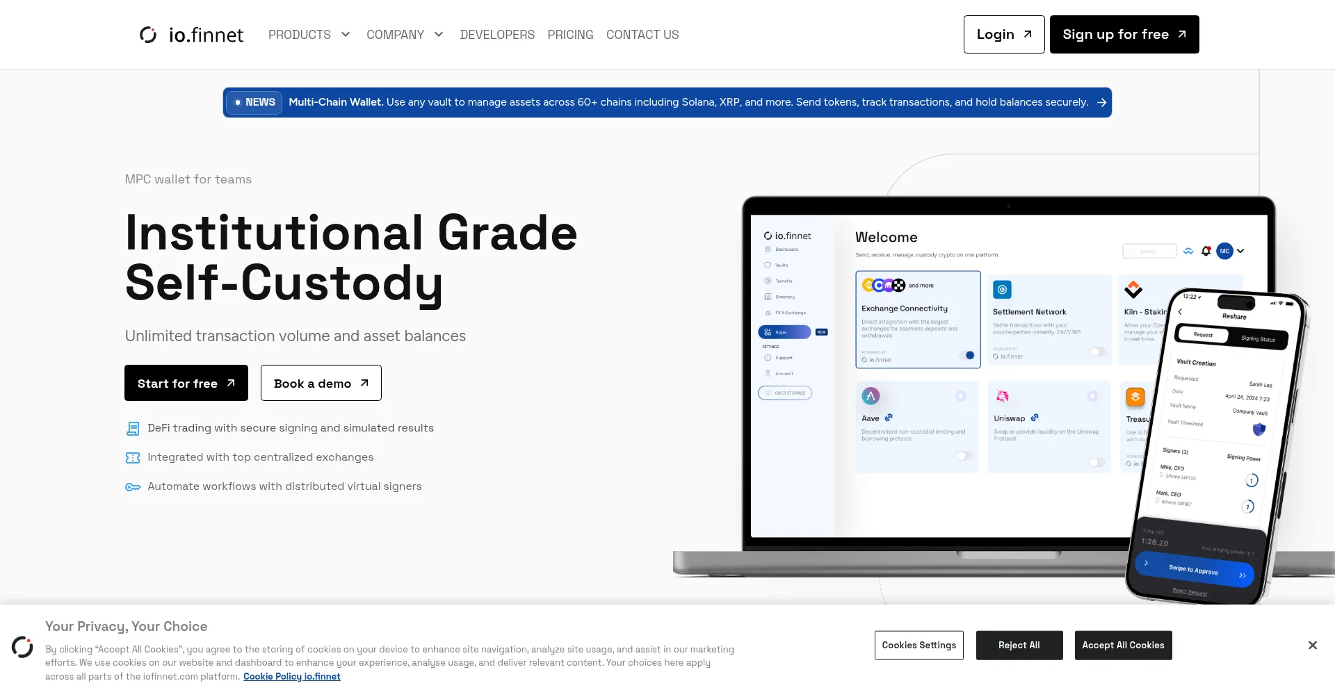 Securely hold and transact digital assets with io.vault—our self-custody solution. Eliminate single points of trust or failure. A scalable way to manage organizational assets.