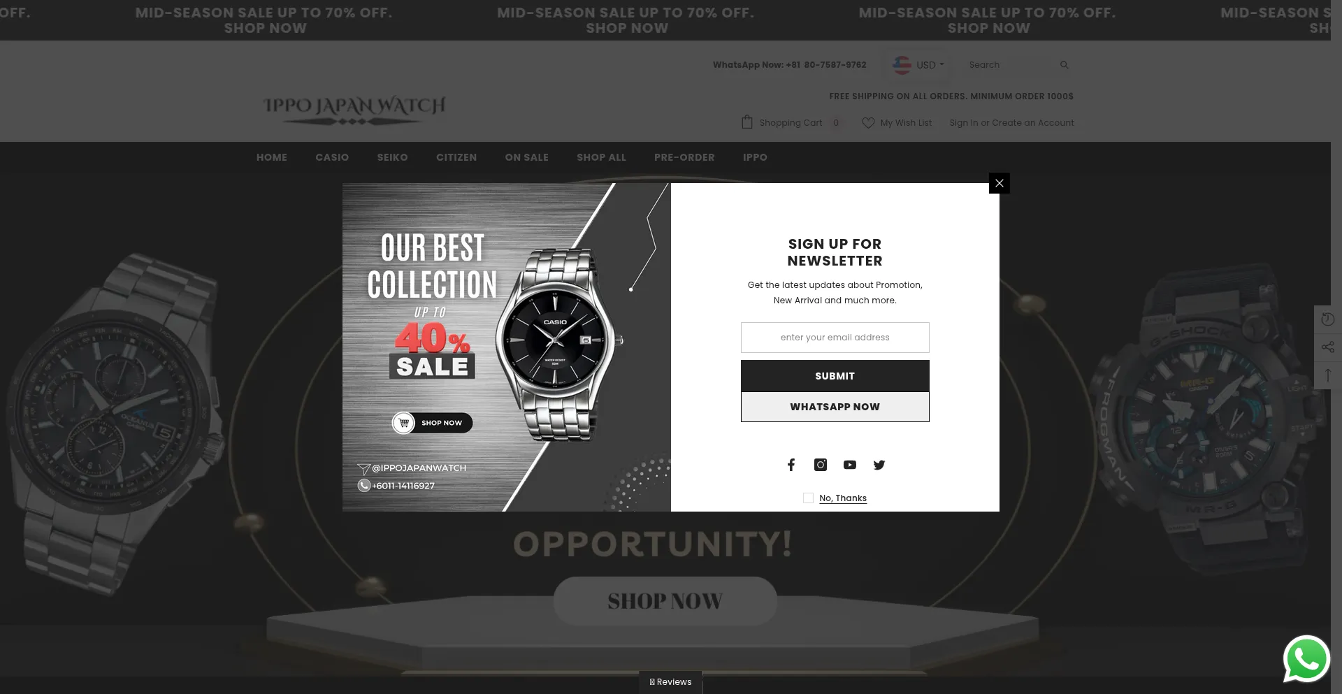 IPPO JAPAN WATCH is retail and wholesale of Japanese brands such as Seiko, Citizen, Casio. All products are shipped directly from Japan to the world. When the product is release...