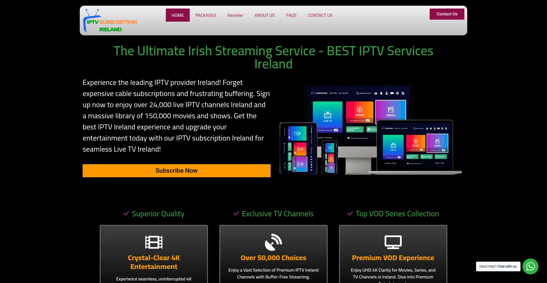 Experience the best IPTV service in Ireland with 24,000+ channels, 160,000 movies & series, and premium 4K streaming. Get started with a free trial today!