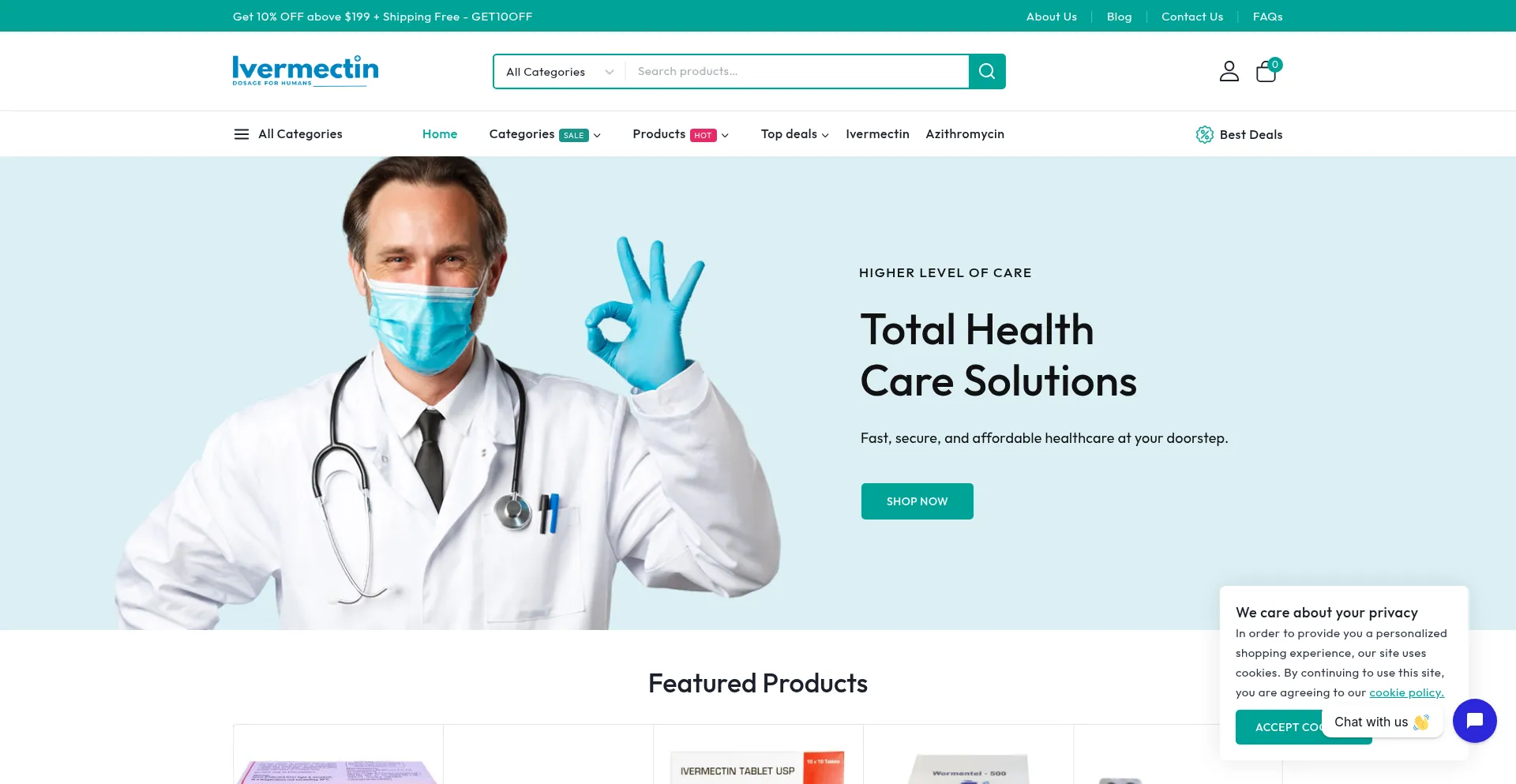 Shopping, Reliable Payment Method, Deals, Drugstore, Wordpress Platform, Google Tag Manager, Cloudflare Browser Insights, SEO Optimization, Live Chat, Young Domain