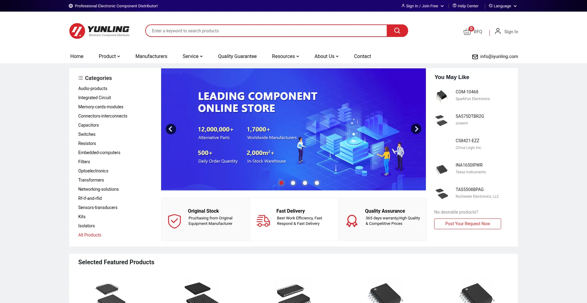 Hong Kong Yunling Electronics Co., Limited components distributor offers a huge selection of high-quality electronic parts. Large in-stock quantities with lower price and read...