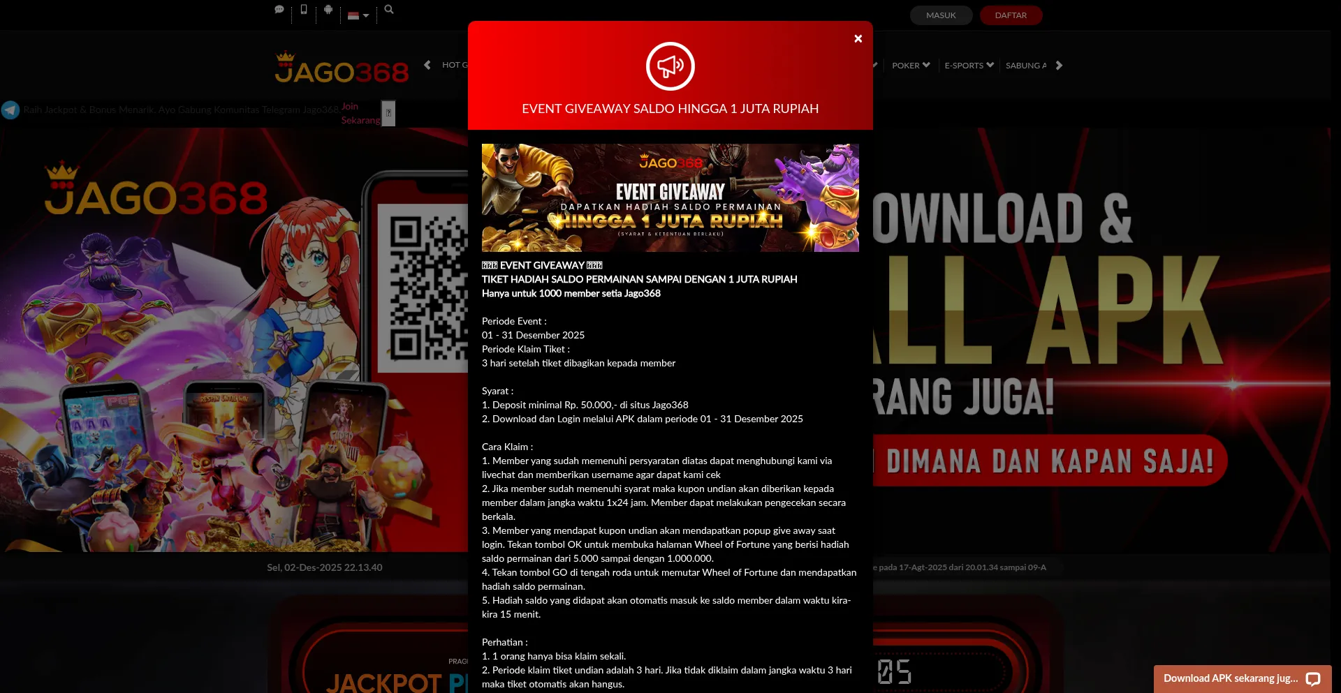 Jago368 menghadirkan pengalaman judi online terbaik 2025. Mainkan slot populer, kasino live, dan dapatkan bonus besar setiap hari. Daftar sekarang dan menang besar.