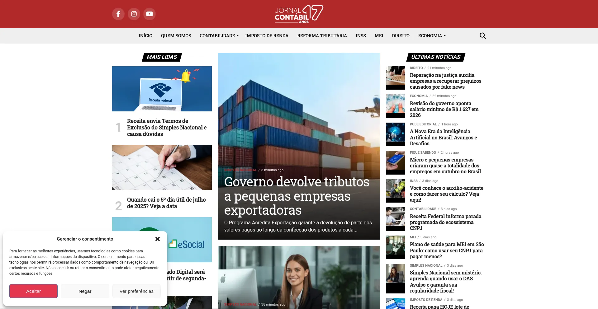 Fique por dentro das Ășltimas notĂ­cias e novidades do mundo contĂĄbil e empresarial com o Jornal ContĂĄbil. AnĂĄlises, legislação, prazos e tudo que vocĂȘ precisa para sua ro...