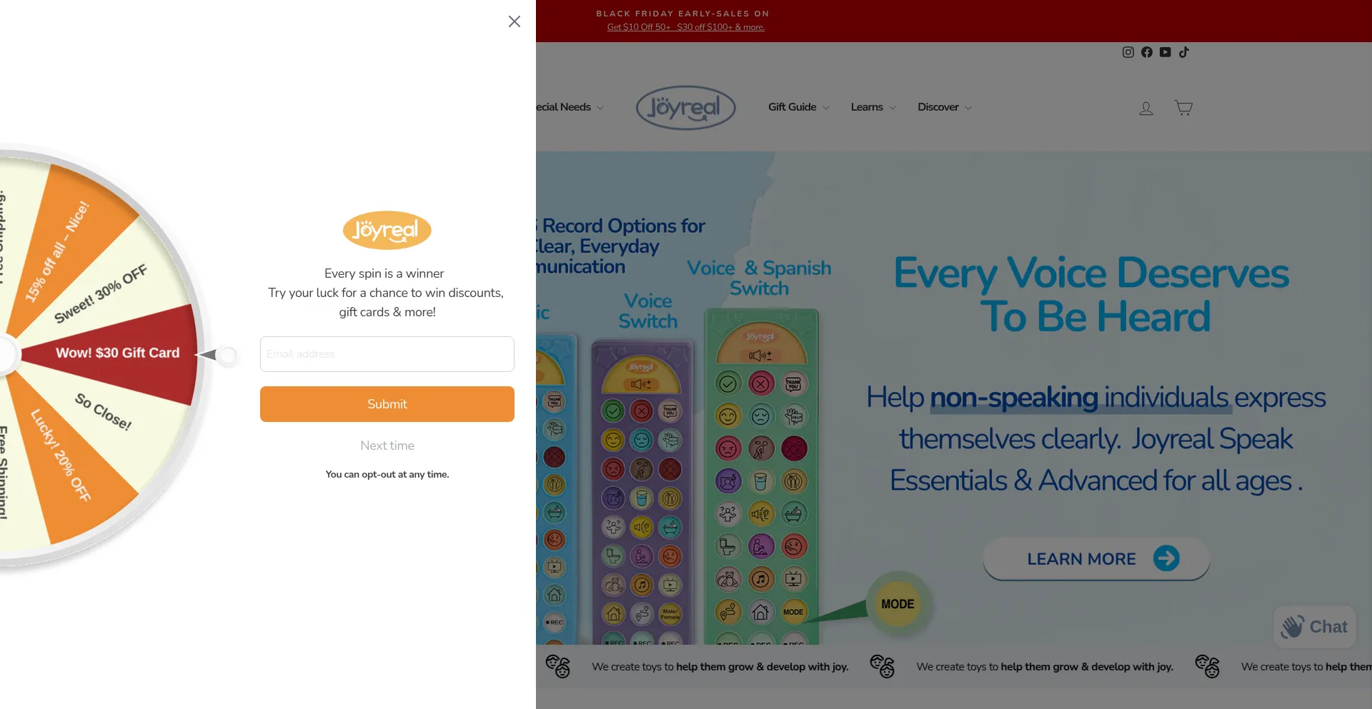 La présence de liens de médias sociaux sur le site web indique que joyrealtoys.com maintient des comptes officiels sur les médias sociaux, ce qui est un signe positif de crédibilité et d'engagement.