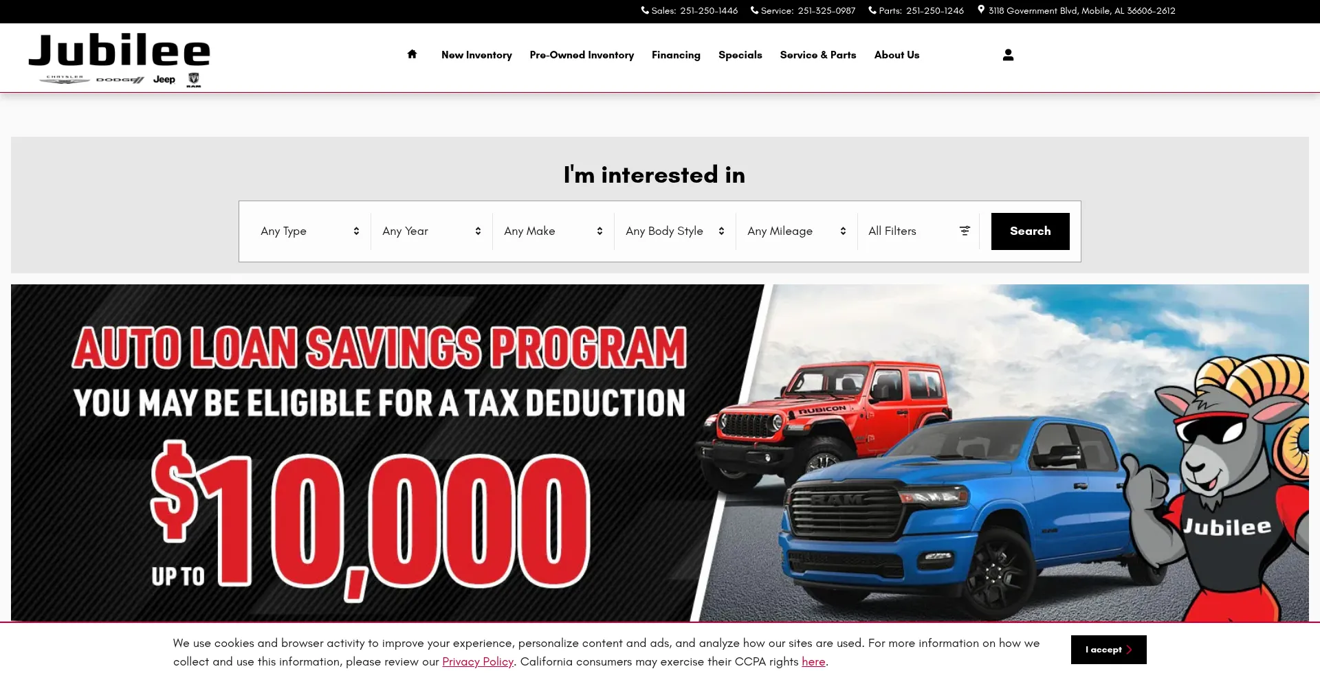 Jubilee Chrysler Dodge JeepÂź RAM Dealership in Mobile, AL