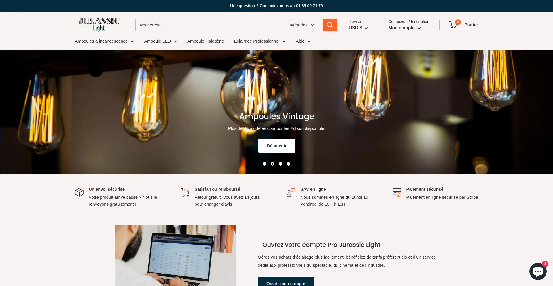 Spécialiste des ampoules à incandescence, halogÚnes, Edison vintage et modÚles rares pour particuliers et professionnels. Livraison rapide en France. Jurassic Light.