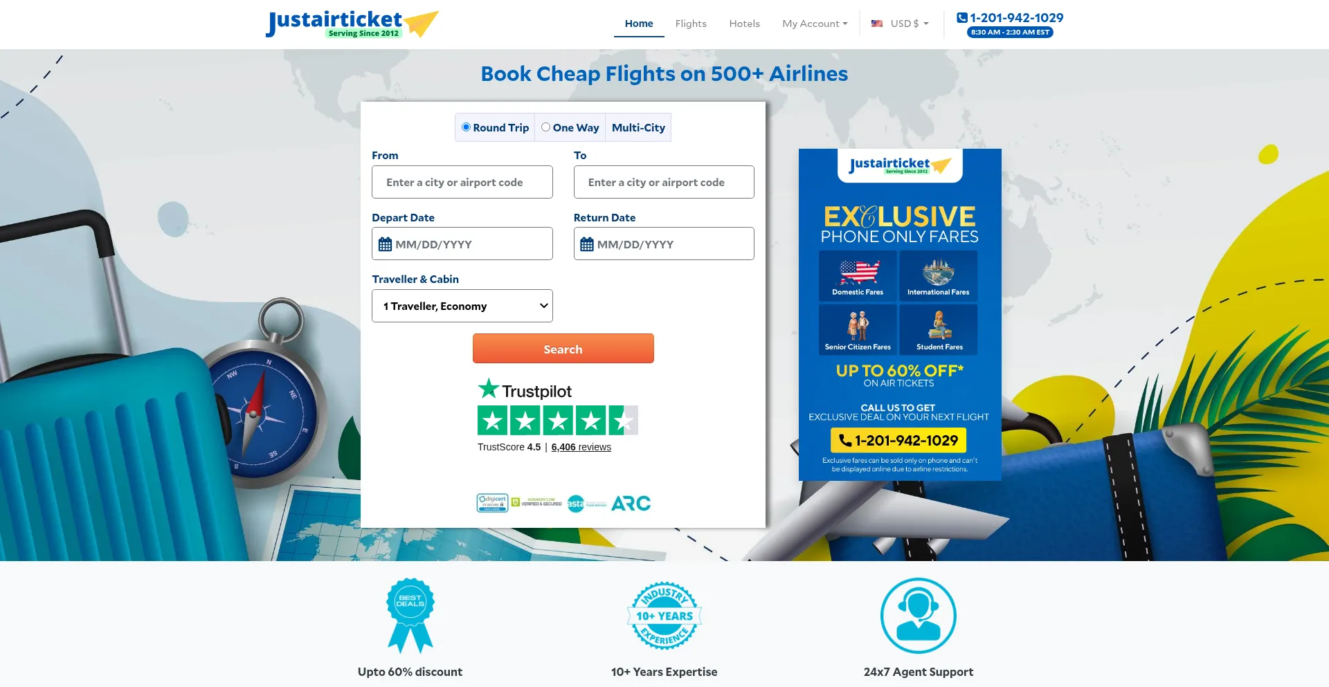 Looking for cheap flights from your destination? Search for airfare and flight ticket deals at JustAirTicket and book your next flight today.