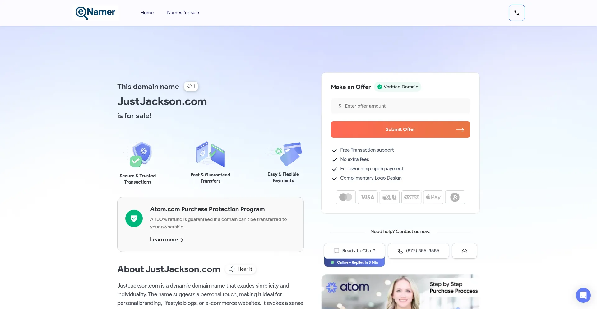 JustJackson.com is available for sale on Atom. Buy this premium domain name and get a free logo. JustJackson has strong buyer interest, so act now!