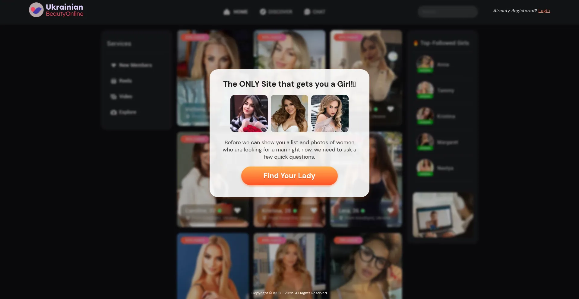 Before we can show you a list and photos of women who are looking for a man right now, we need to ask a few quick questions.
