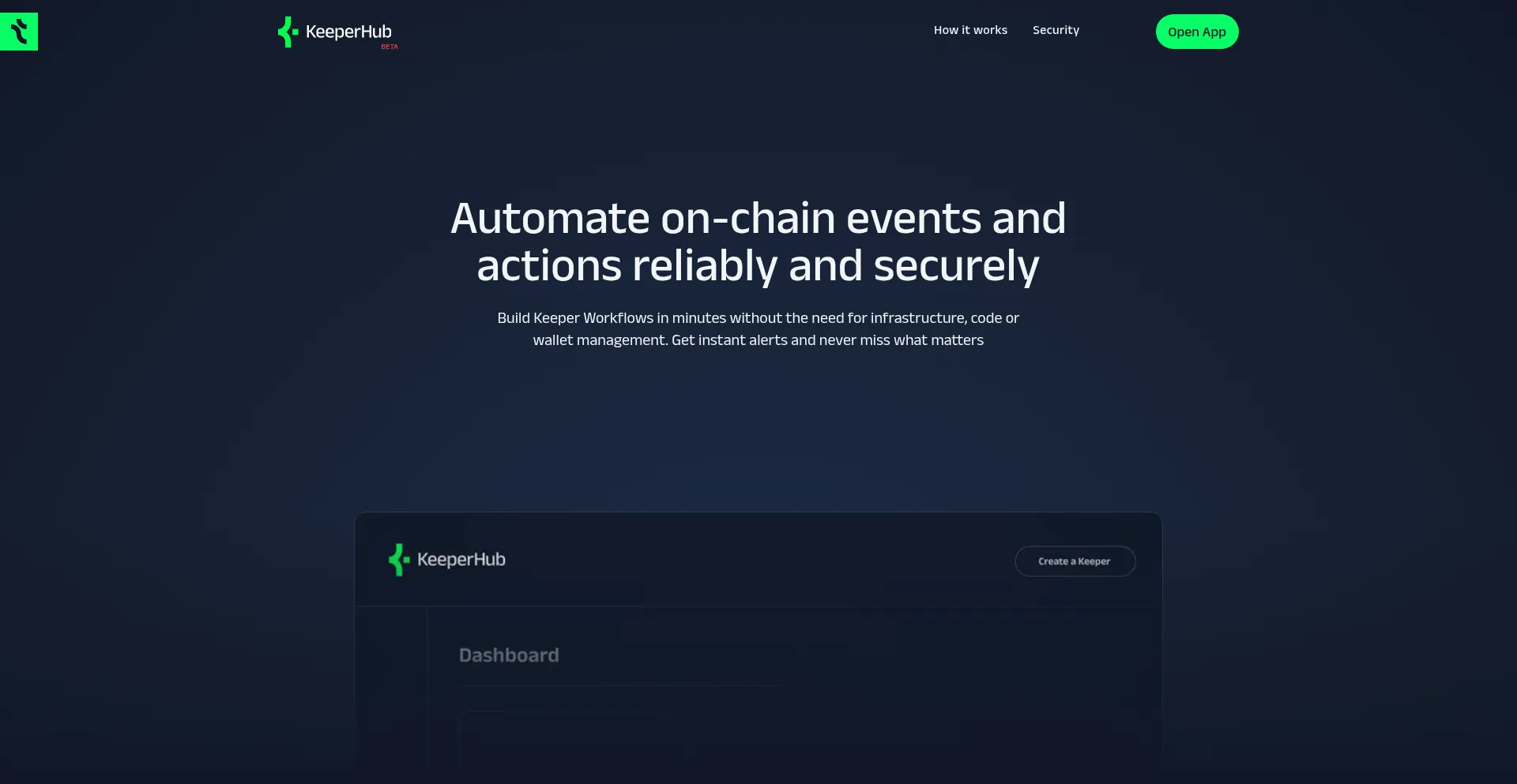 Automate on-chain events and actions reliably and securely. Build Keeper Workflows in minutes without the need for infrastructure, code or wallet management. Get instant alerts ...