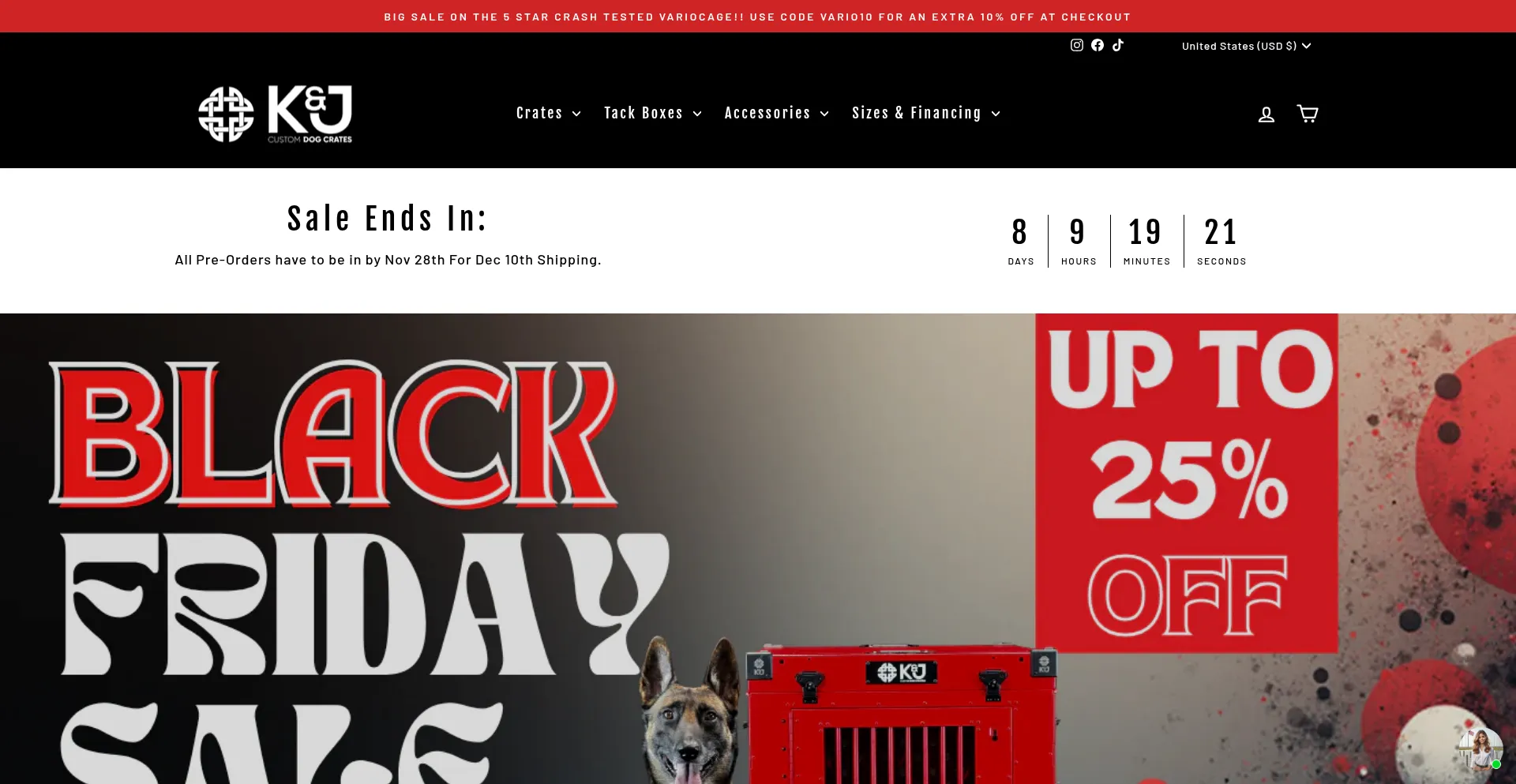 La présence de liens de médias sociaux sur le site web indique que kjcustomdogcrates.ca maintient des comptes officiels sur les médias sociaux, ce qui est un signe positif de crédibilité et d'engagement.