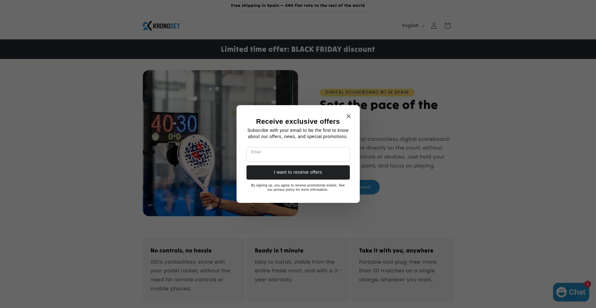 Kronoset, the first contactless digital scoreboard: control the score directly on the court, without any external controls or devices. Just hold your racket, add the point, and ...