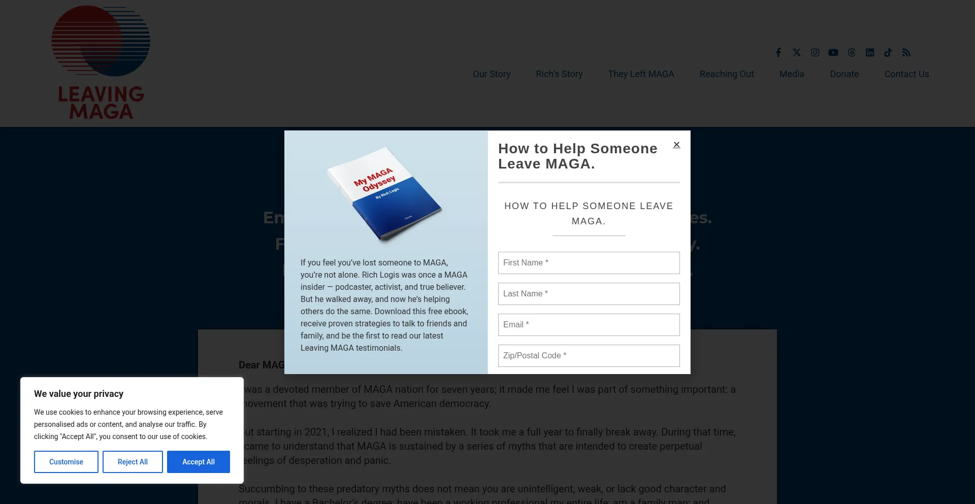 MISSION STATEMENT Empower others to leave MAGA and tell their stories. Foster reconciliation with their friends and family. Develop movement leaders to help others leave. Dear M...