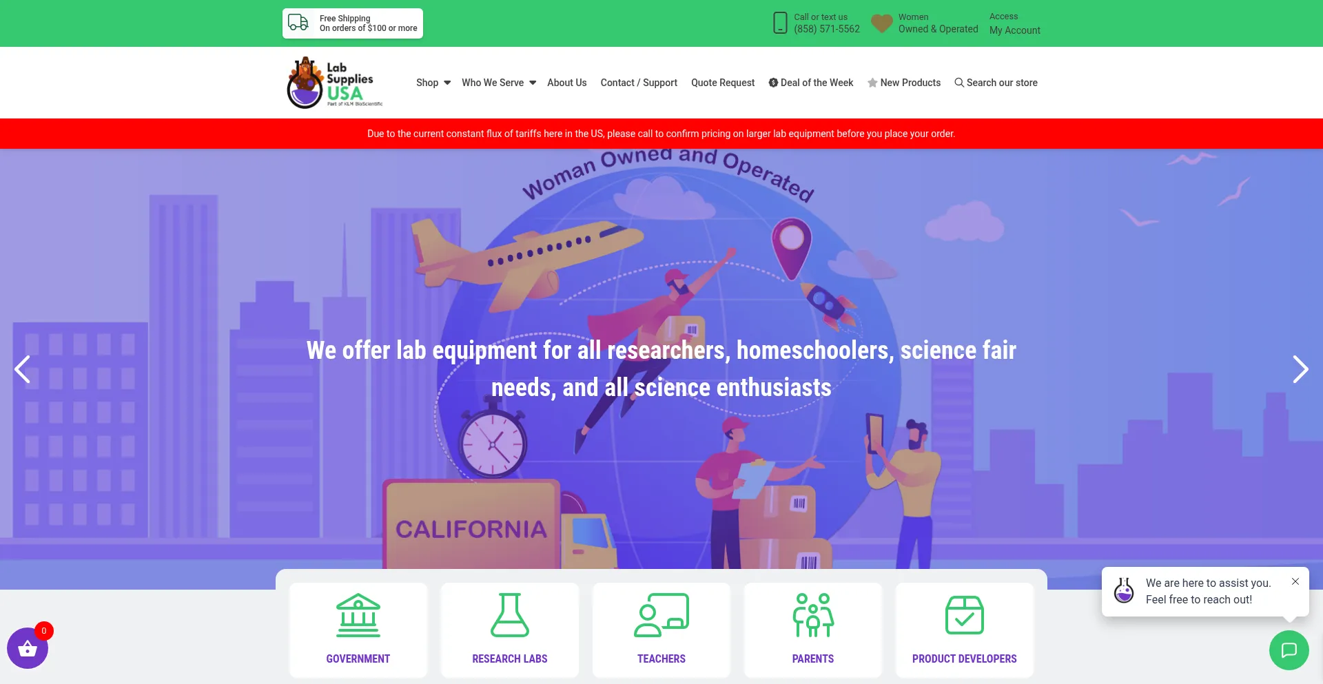 Due to the current constant flux of tariffs here in the US, please call to confirm pricing on larger lab equipment before you place your order.