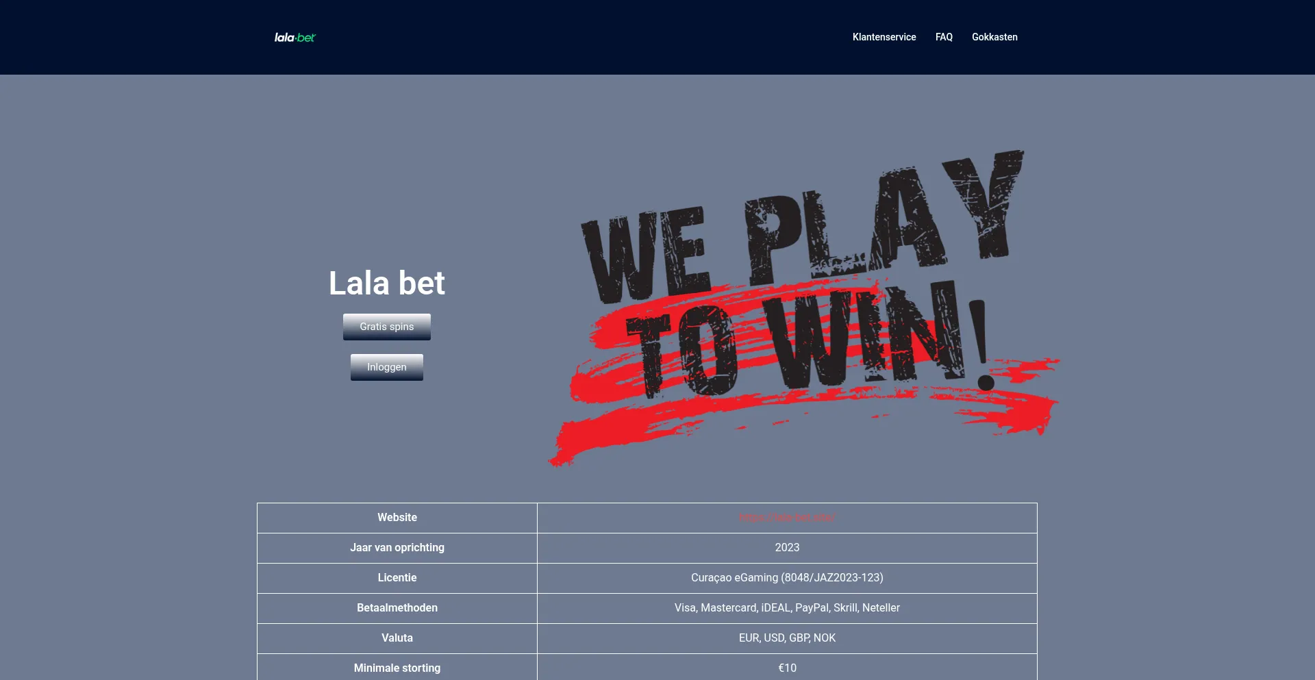 Officiële online casino website Lala bet Nederland | €250 welkomstbonus