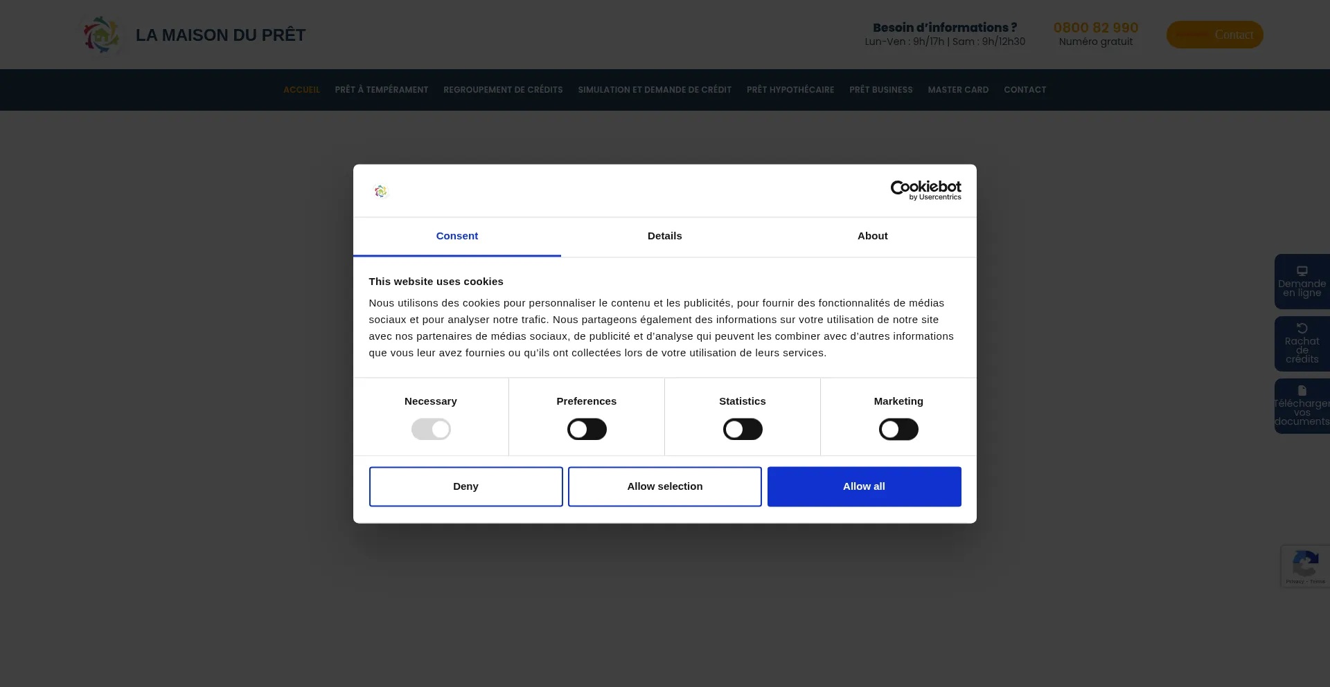 Le site web implémente des mécanismes de consentement aux cookies en conformité avec les réglementations de confidentialité telles que RGPD ou CCPA. Cela démontre que lamaisondupret.eu adhÚre aux standards de protection des données et fournit aux utilisateurs un contrÎle sur les pratiques de collecte de données personnelles.