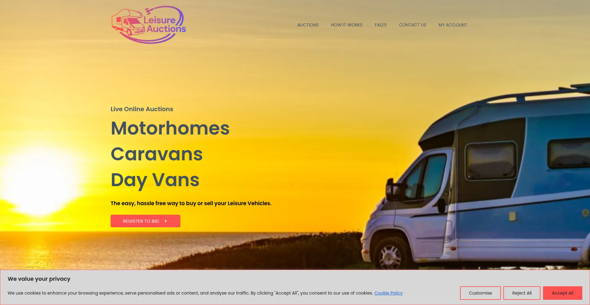 Live UK Online Motorhome, Caravan & Day Van Auctions. Free to sell with low buyers premium. Hassle free way to buy or sell Leisure Vehicles.