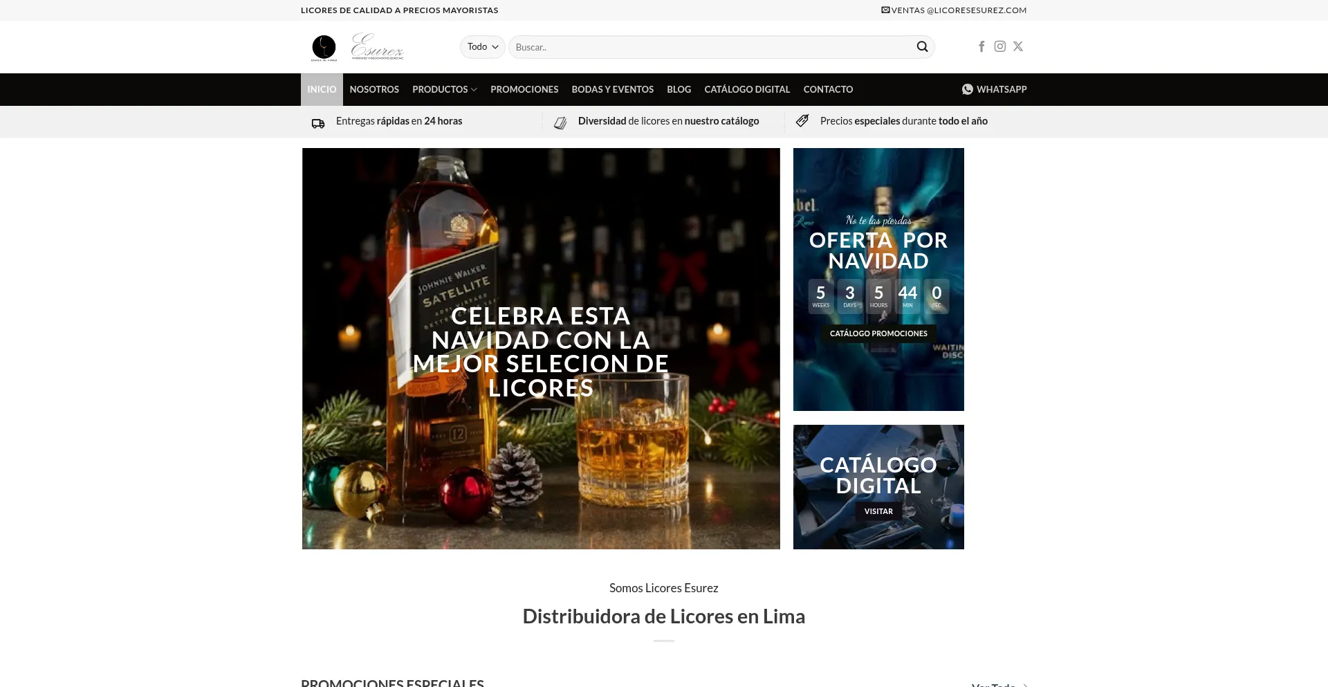 Licores Esurez es tu distribuidora de licores en Lima. Gran surtido de vinos, rones y whiskies con calidad superior y servicio confiable. ÂĄHaz tu pedido ahora!