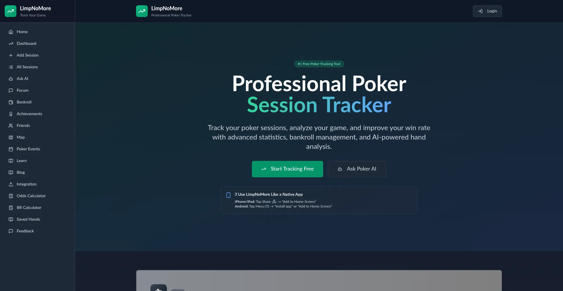 Professional Poker Session Tracker & Analytics | LimpNoMore - Professional Poker Session Tracker