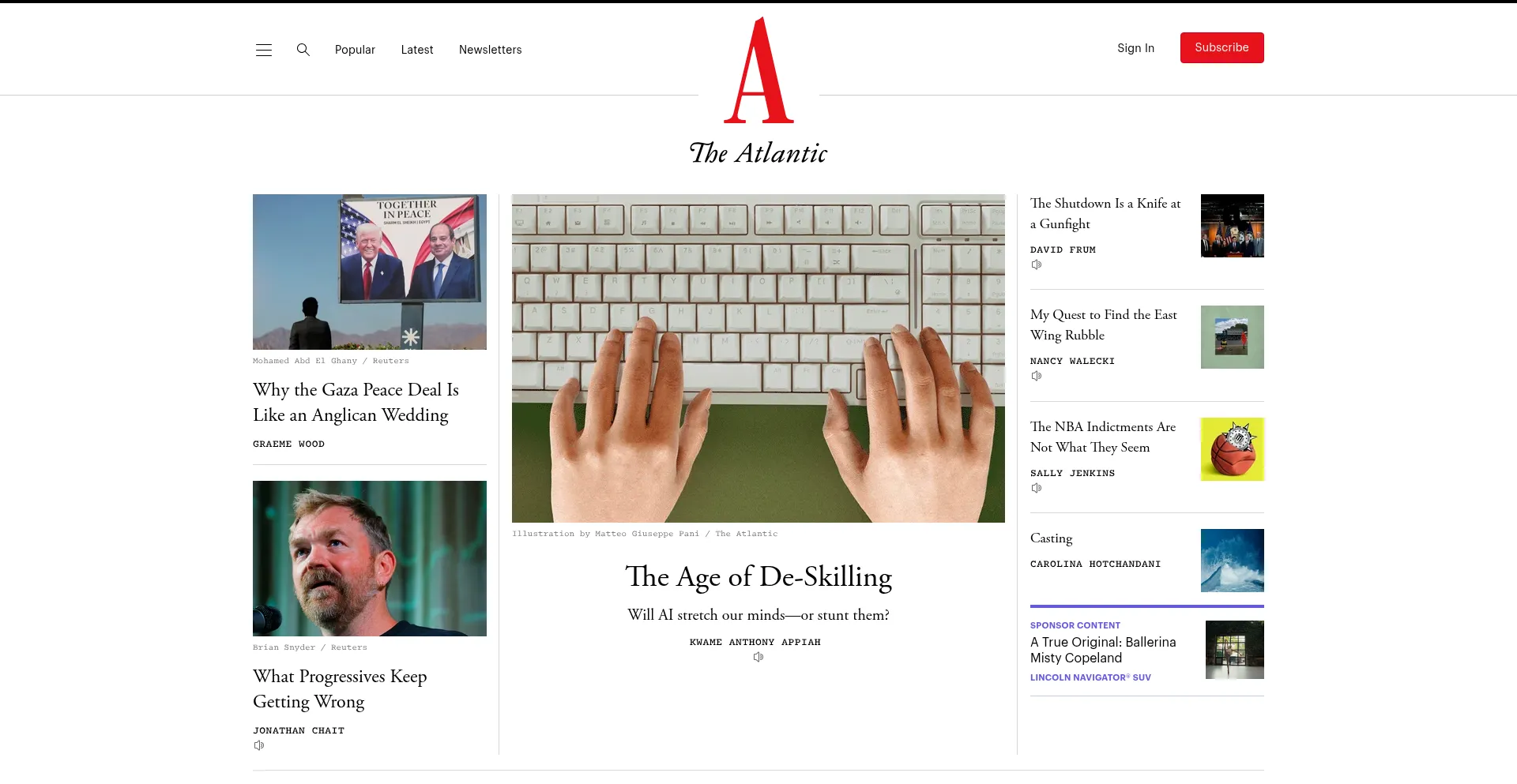 The Atlantic covers news, politics, culture, technology, health, and more, through its articles, podcasts, videos, and flagship magazine.
