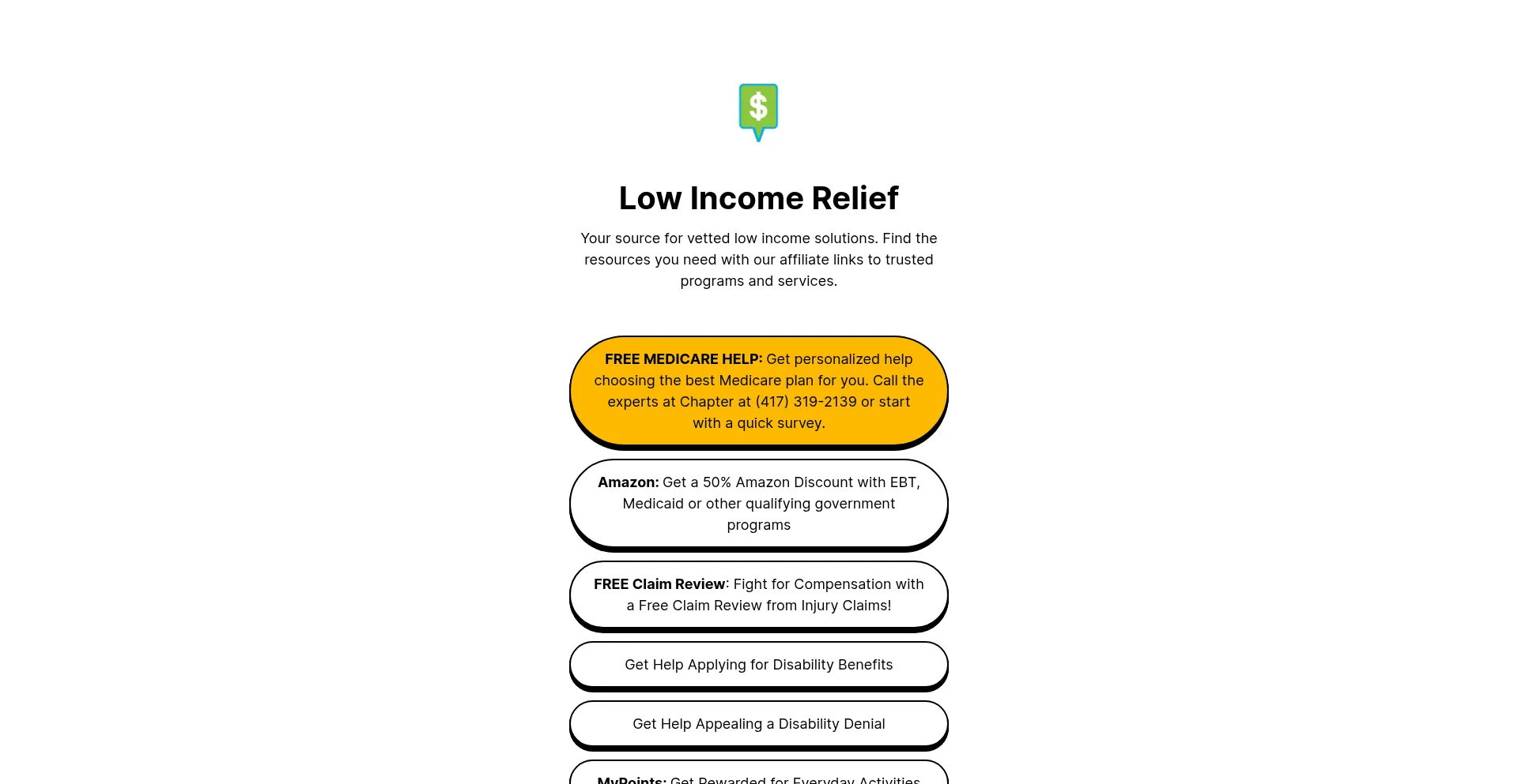 Low Income Relief (LIR) Links - Shorthand Links to Low Income Relief Approved Services