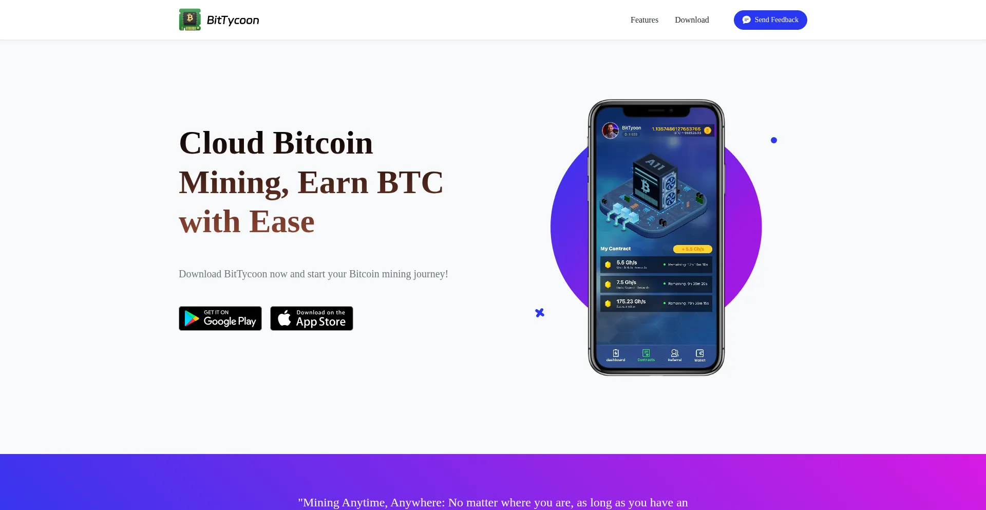 Download BitTycoon now and start your Bitcoin mining journey!